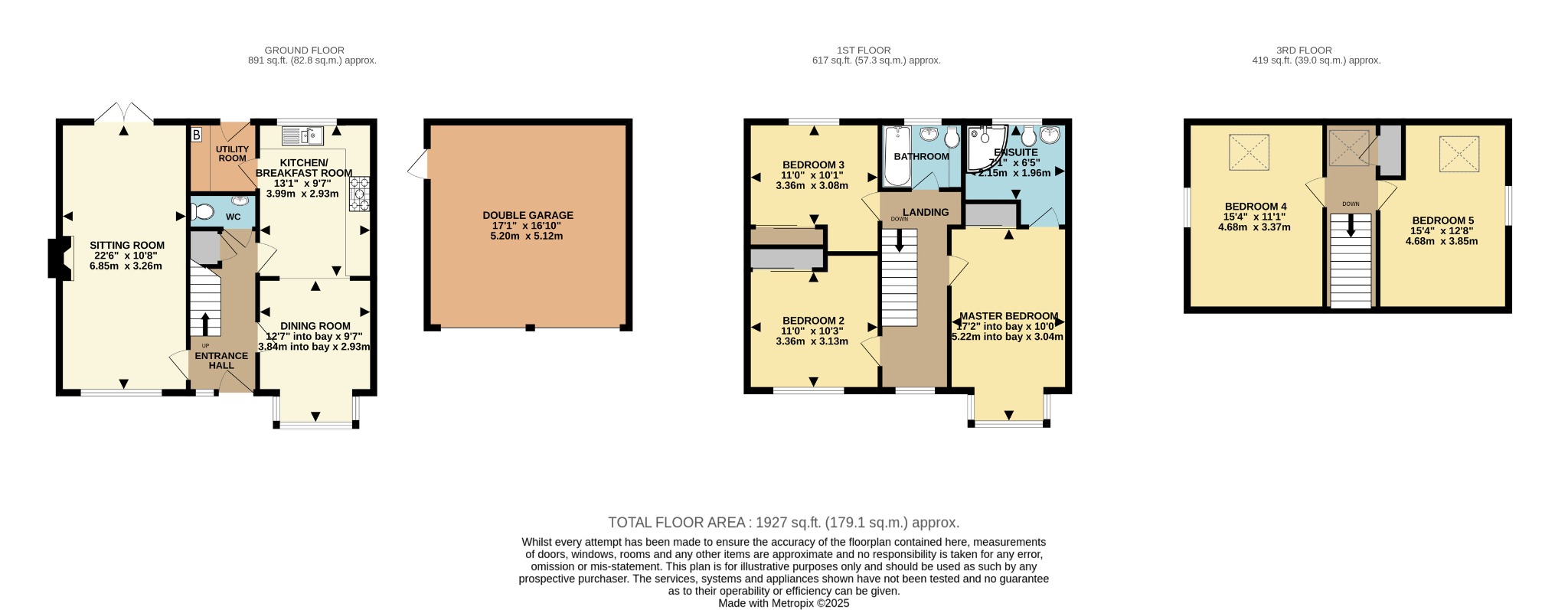 On the first floor are three double bedrooms, each with fitted wardrobes, including the principal bedroom with en-suite, along with a well-appointed family bathroom. The second floor offers two further double bedrooms, both enjoying dual aspects, creating bright and versatile spaces.