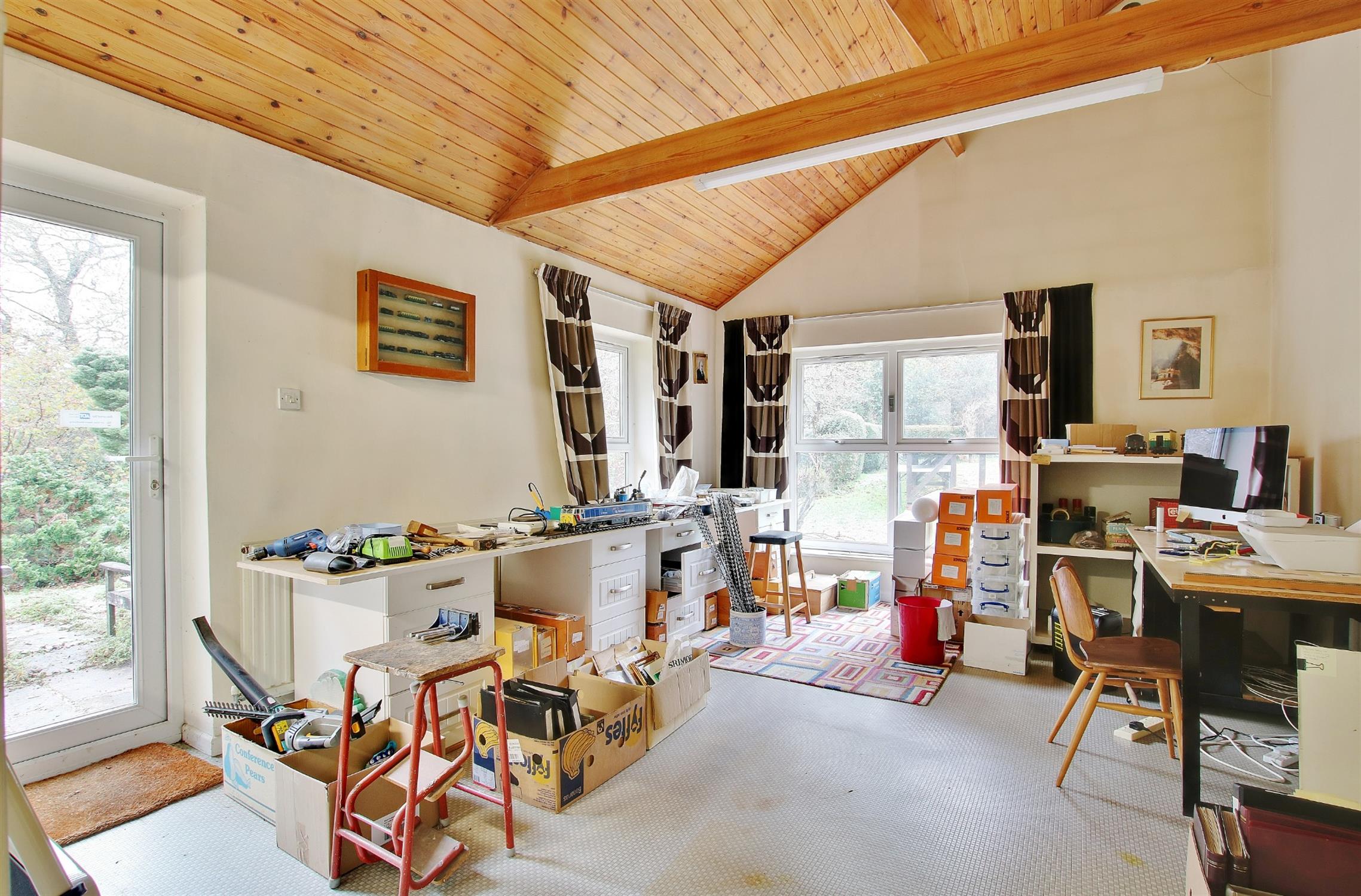Radiator. Double-glazed windows to the side and rear and door to the garden. Door to garage. Vaulted ceiling.