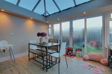 Suitable for use as a dining room, playroom etc, double-glazed windows and sliding doors to the garden.