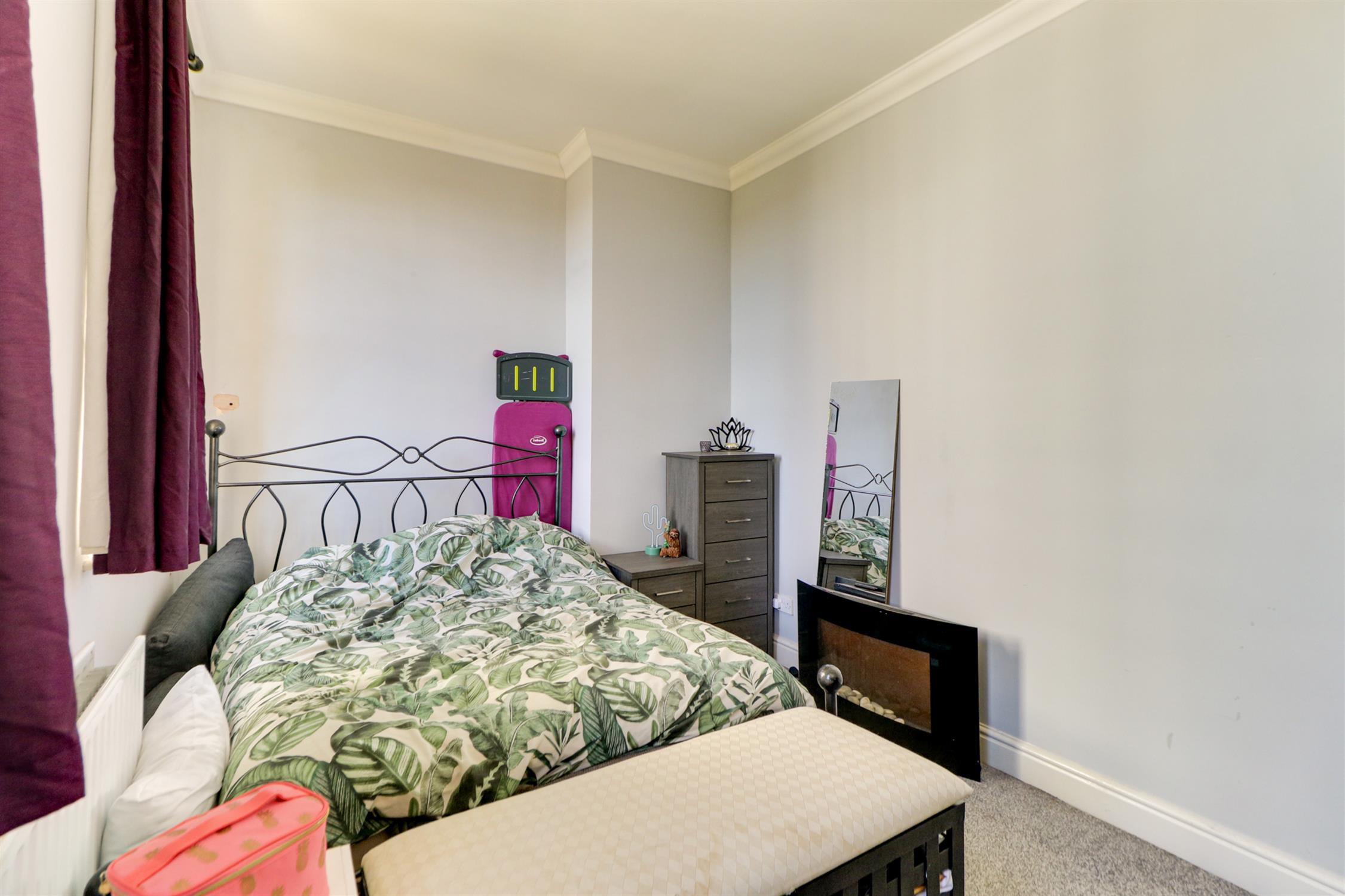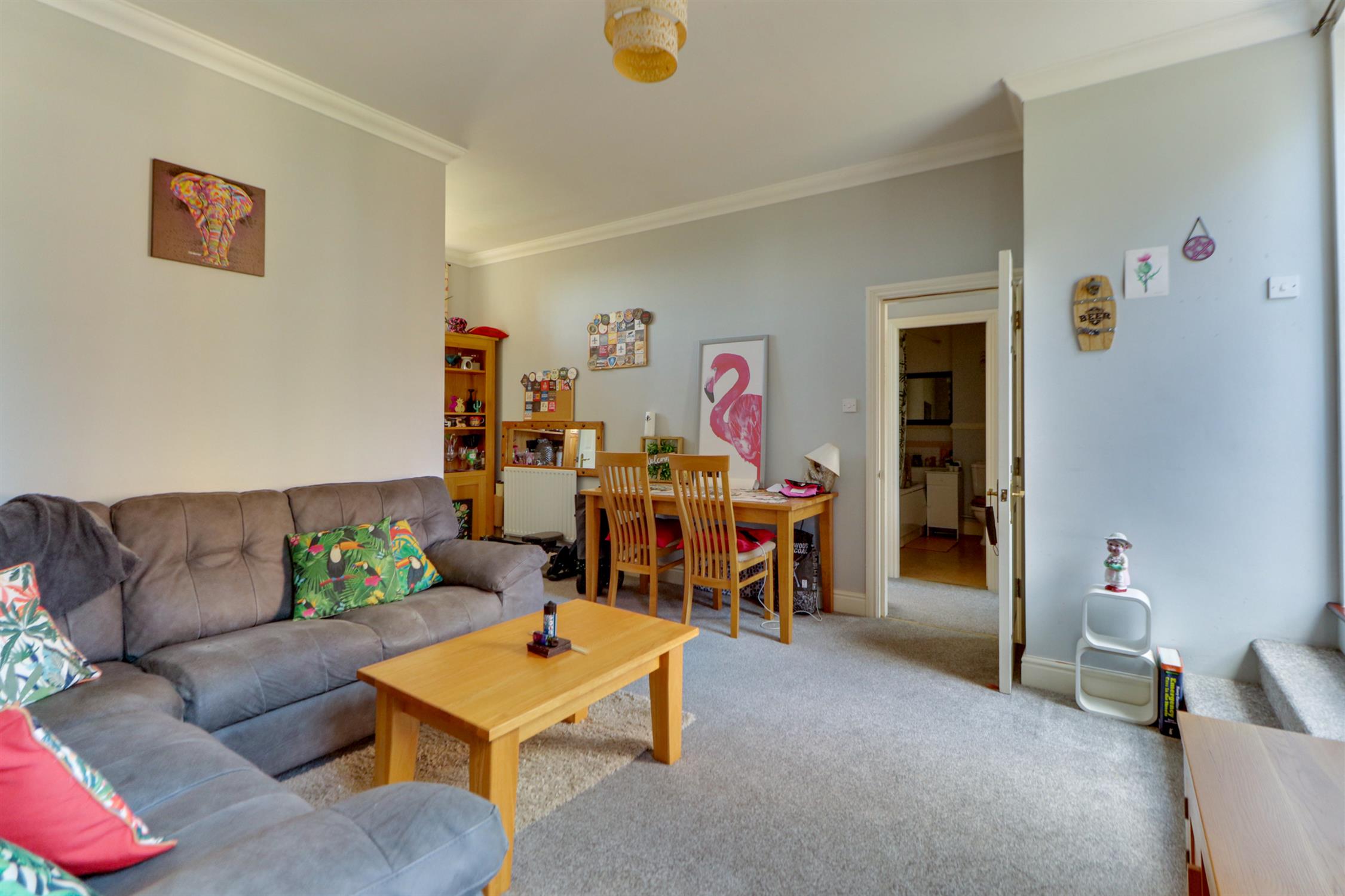 Smooth and coved ceiling, dual aspect sash window, door to balcony, radiators and fitted carpet.
