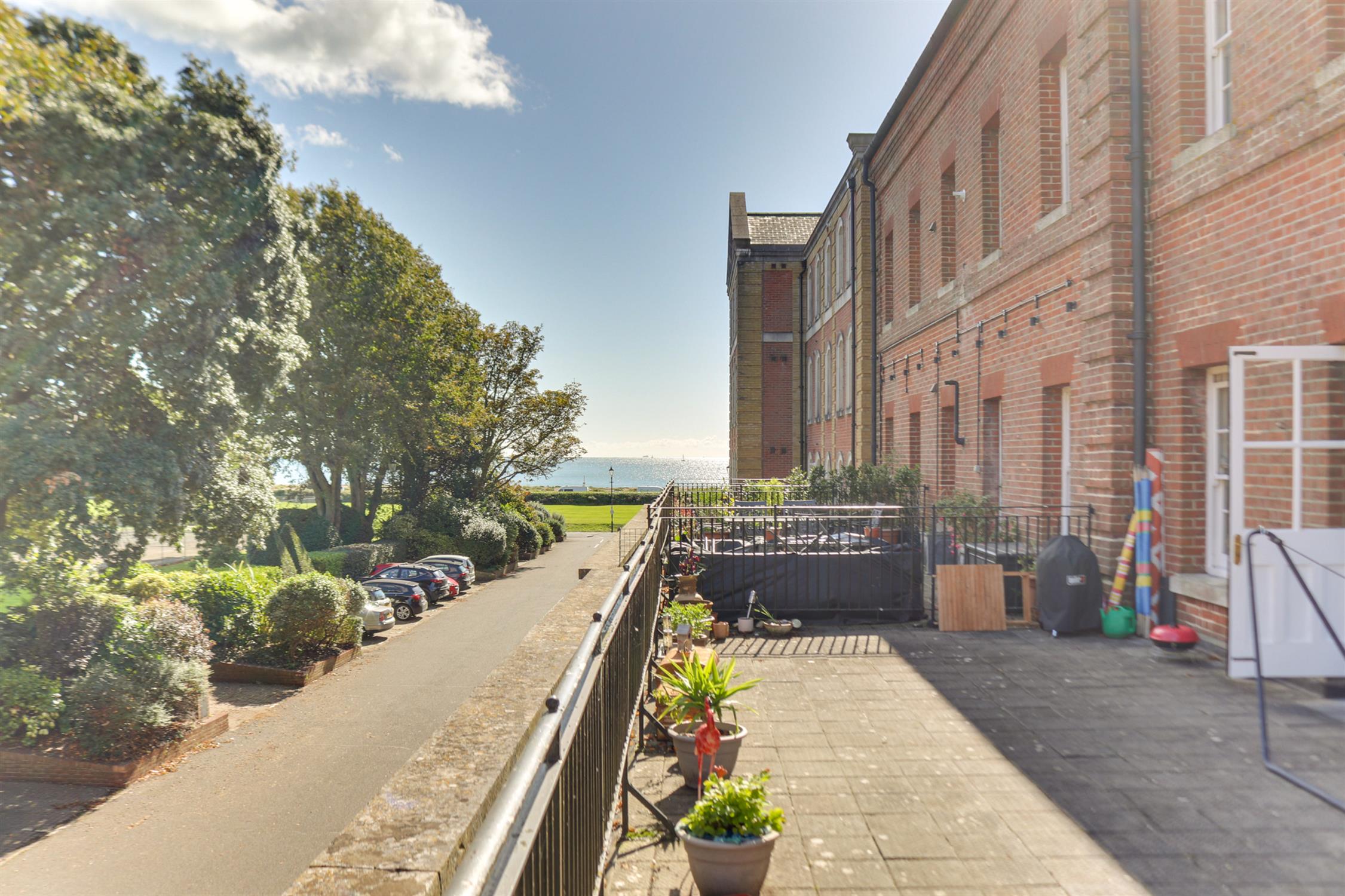 Overlooking the communal grounds of the estate and with views of the Solent, approx. 11.40m x 4.34m terrace with railings.