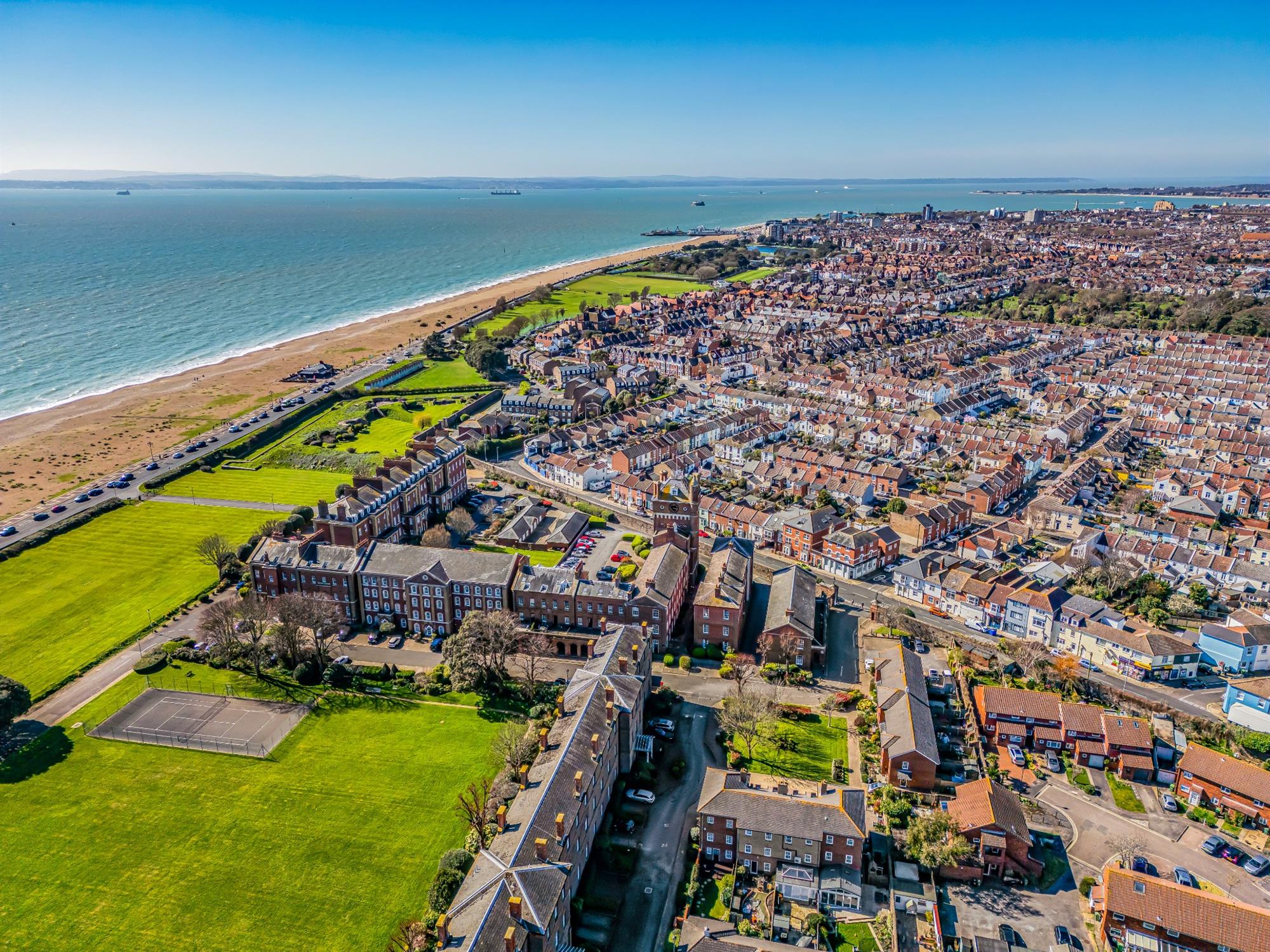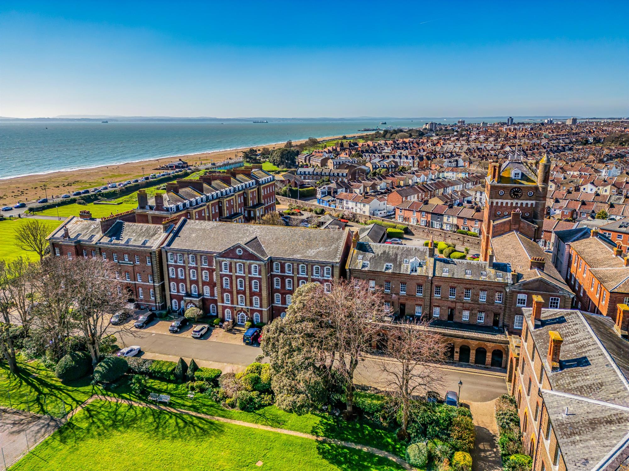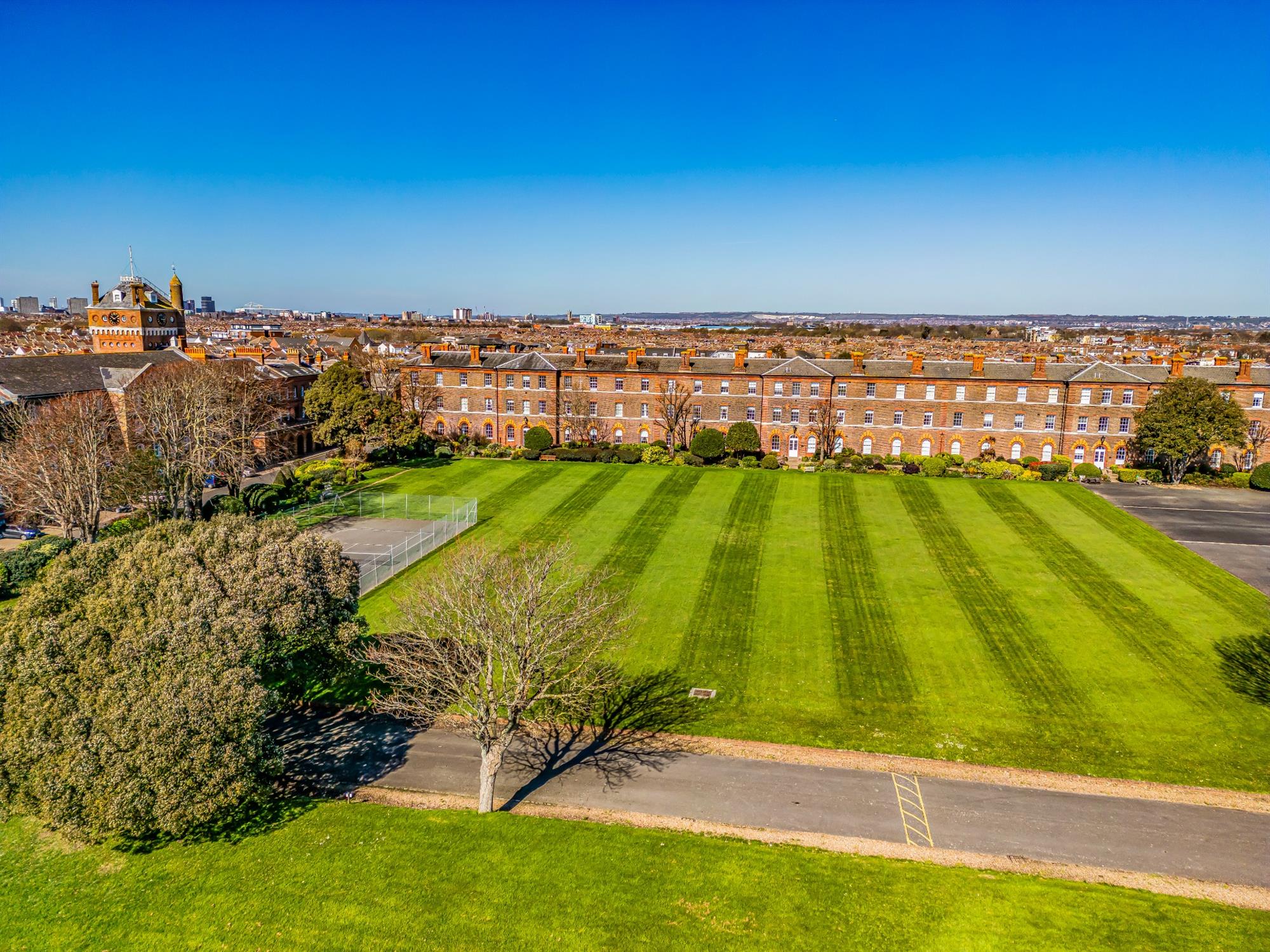 This unique one bedroom apartment situated within situated within the picturesque grounds of Marine Gate, a former Royal Marine barracks, now an exclusive residential development. The Colonnades is a Grade II listed building with striking elevations of red brick, the namesake arches and tall sash windows. The apartment is benefits from a large terrace which directly overlooks the communal grounds and enjoys views of the Solent. Measuring over 11m x 4m, the terrace has ample space for those looking for the convenience and security of an apartment without compromising on outside space.
