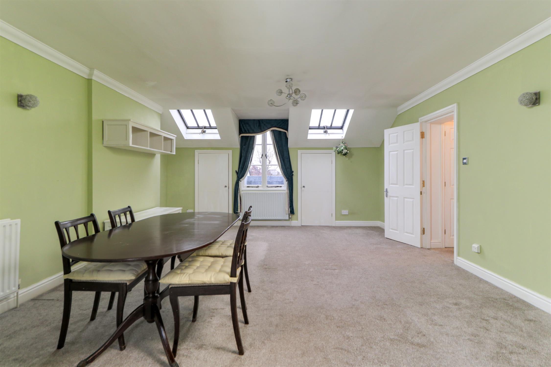 Smooth and coved ceilings, two double glazed roof windows, window overlooking estate grounds, two radiators, two eaves storage cupboards, fitted carpet, open to: