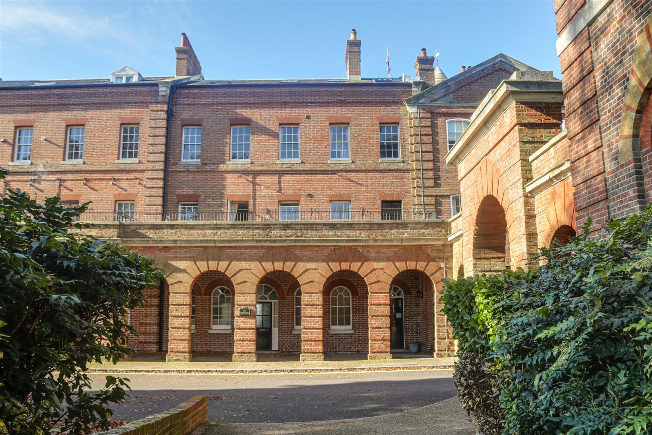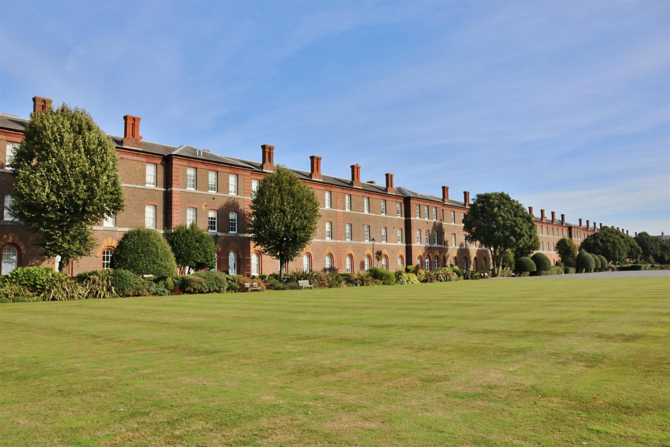 This unique two bedroom apartment situated within is situated within the picturesque grounds of Marine Gate, a former Royal Marine barracks, now an exclusive residential development. The Colonnades is a Grade II listed building with striking elevations of red brick, the namesake arches and tall sash windows. The apartment itself is bright and airy, and has an accommodation comprising: entrance hall with storage, a living room with ample space for dining with an opening to a fitted kitchen with views towards The Solent, two double bedrooms including a master with en-suite bathroom, plus another bathroom.