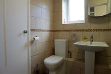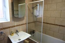 Double glazed window to side elevation. Panel enclosed bath with shower unit over and shower screen. Pedestal wash hand basin. Low level close coupled WC. Tiled walls. Radiator. Large storage cupboard.