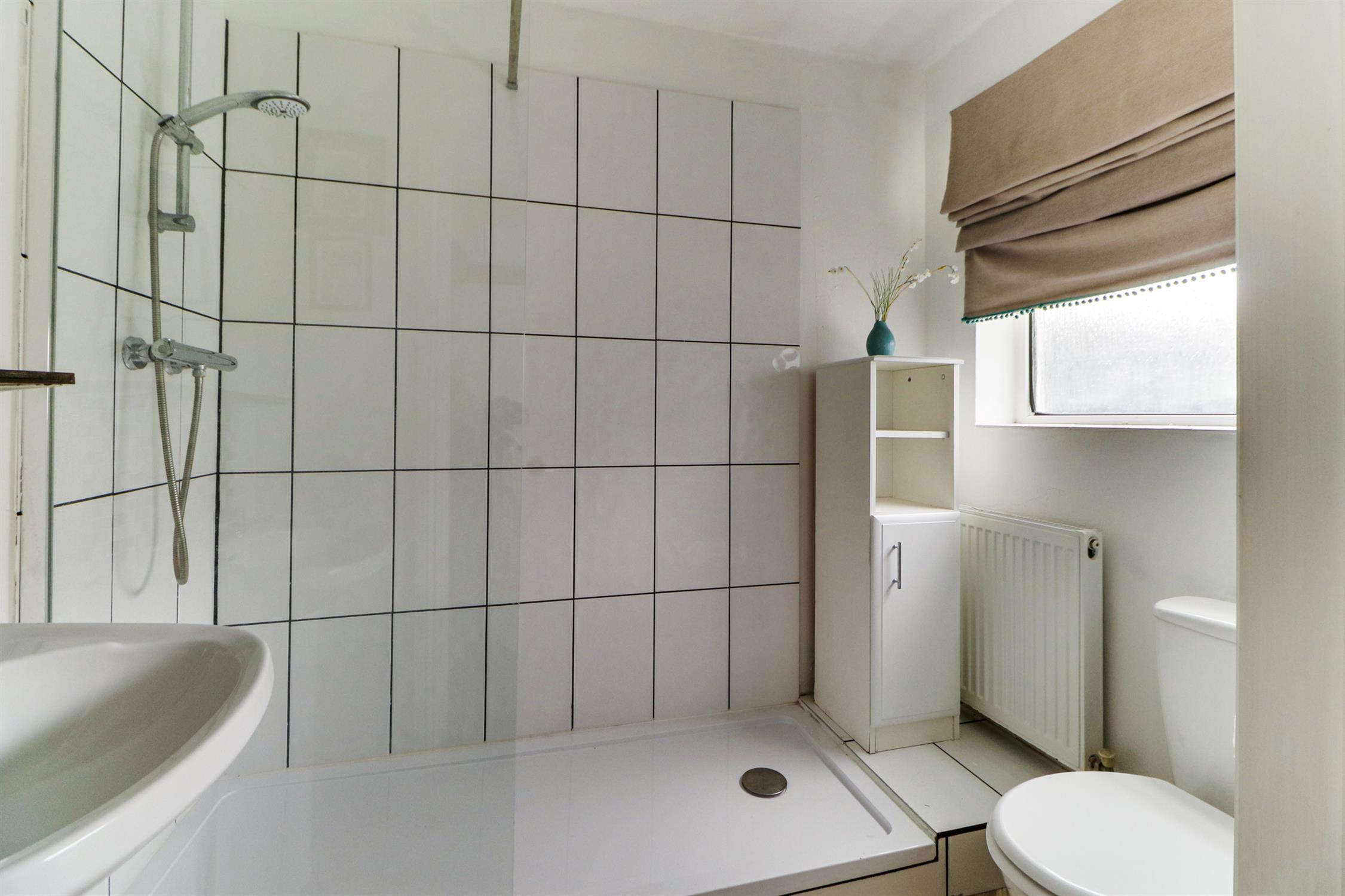 Smooth ceiling, obscured UPVC double-glazed window, shower, tiled splash back, wash hand basin, low level W.C, radiator and vinyl flooring.