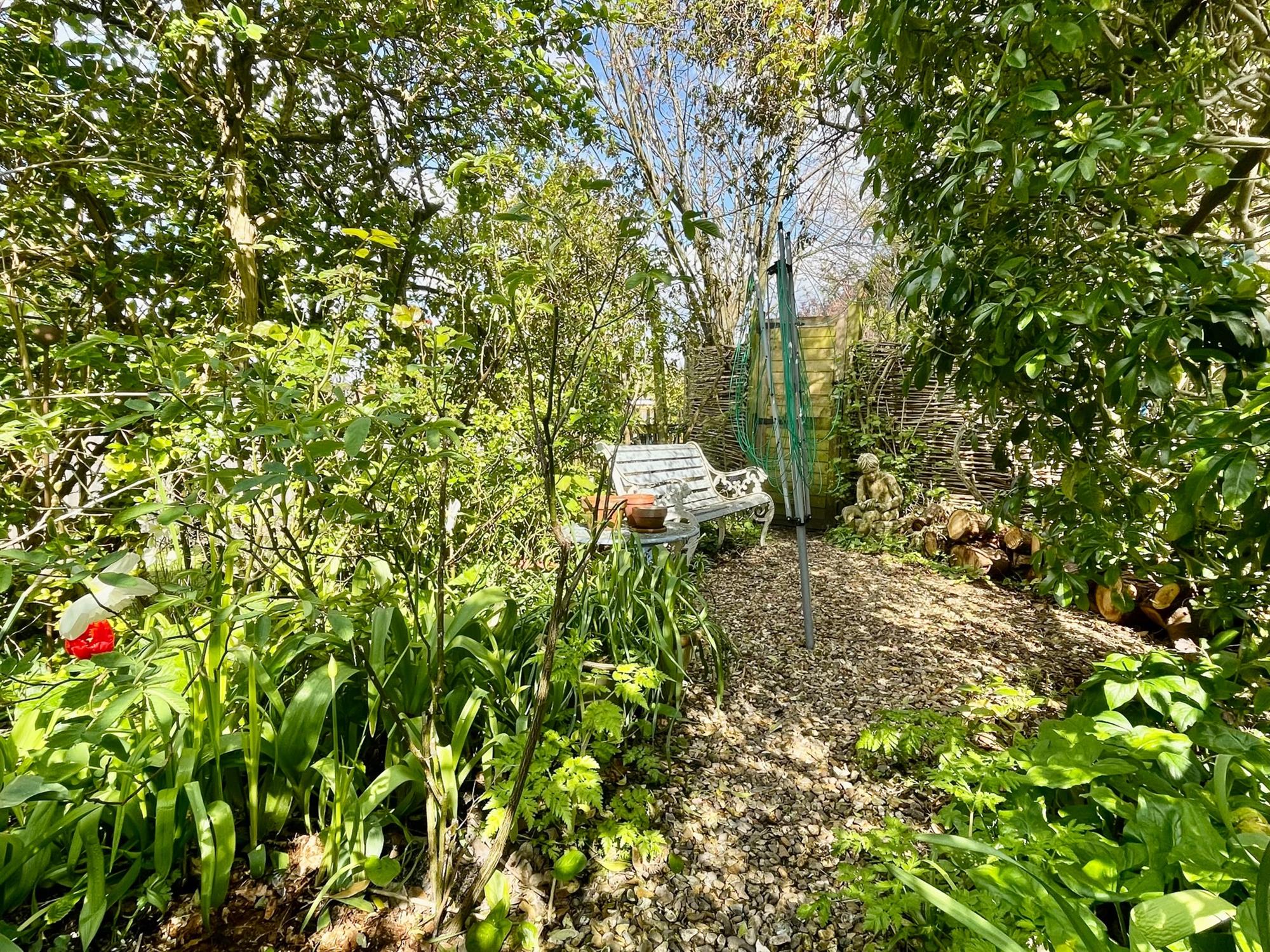 The main part of the garden was designed by a renowned local garden designer. It is planted in a woodland edge style, with an array of rare and mature perennials, shrubs, and small trees. It is an all-season garden, with some of the best shows in Winter and Spring, as well as twenty-two different roses. Through a gate further down the winding path is an area that the vendor currently keeps chickens.