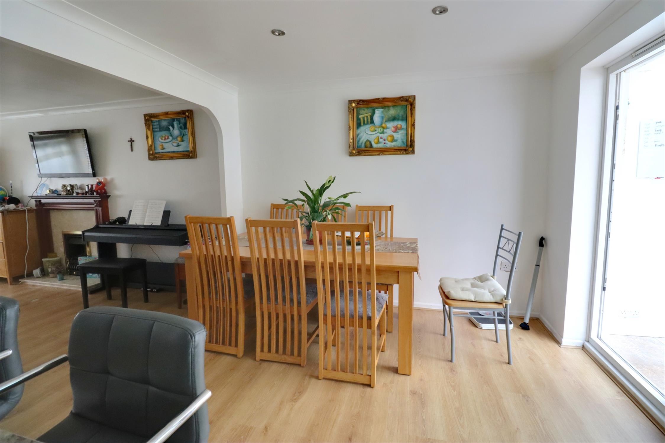 Front aspect double glazed bay window, tall radiator, gas fire with surround, laminate flooring, open arch to the kitchen/dining room.