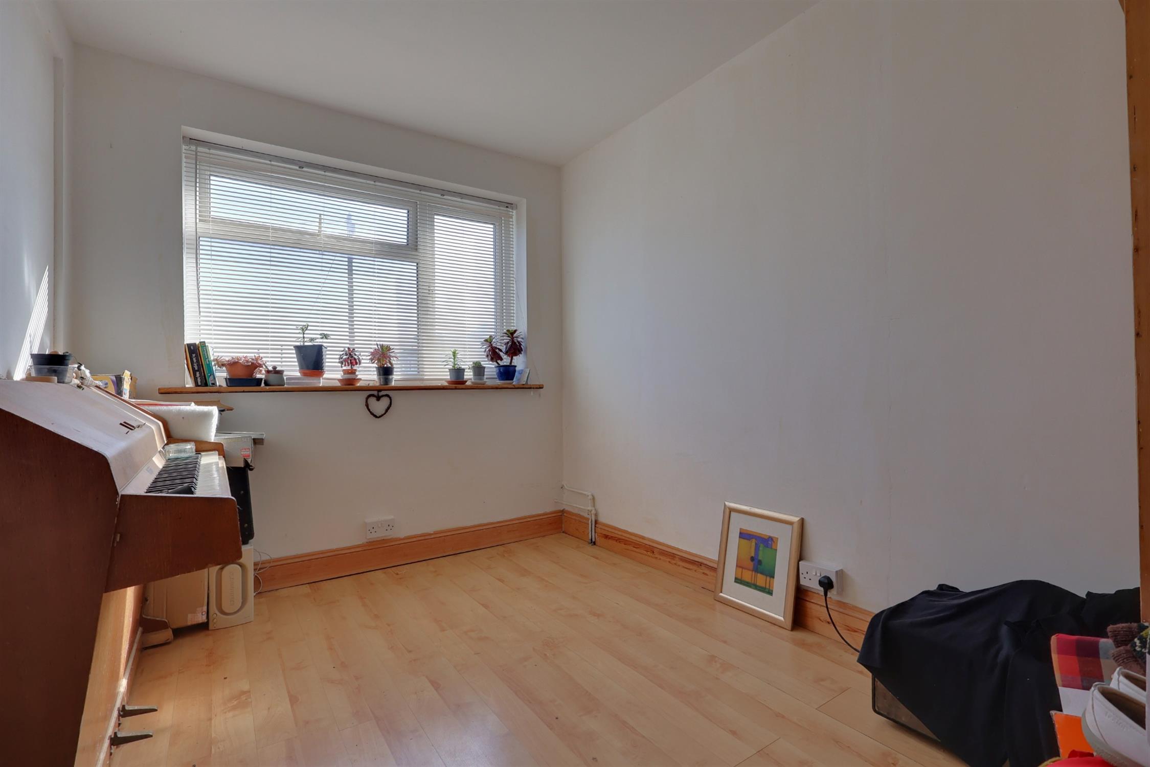 Two double-glazed windows to the front elevation, a split-level wooden floor overlooking the tennis courts, and two radiators.