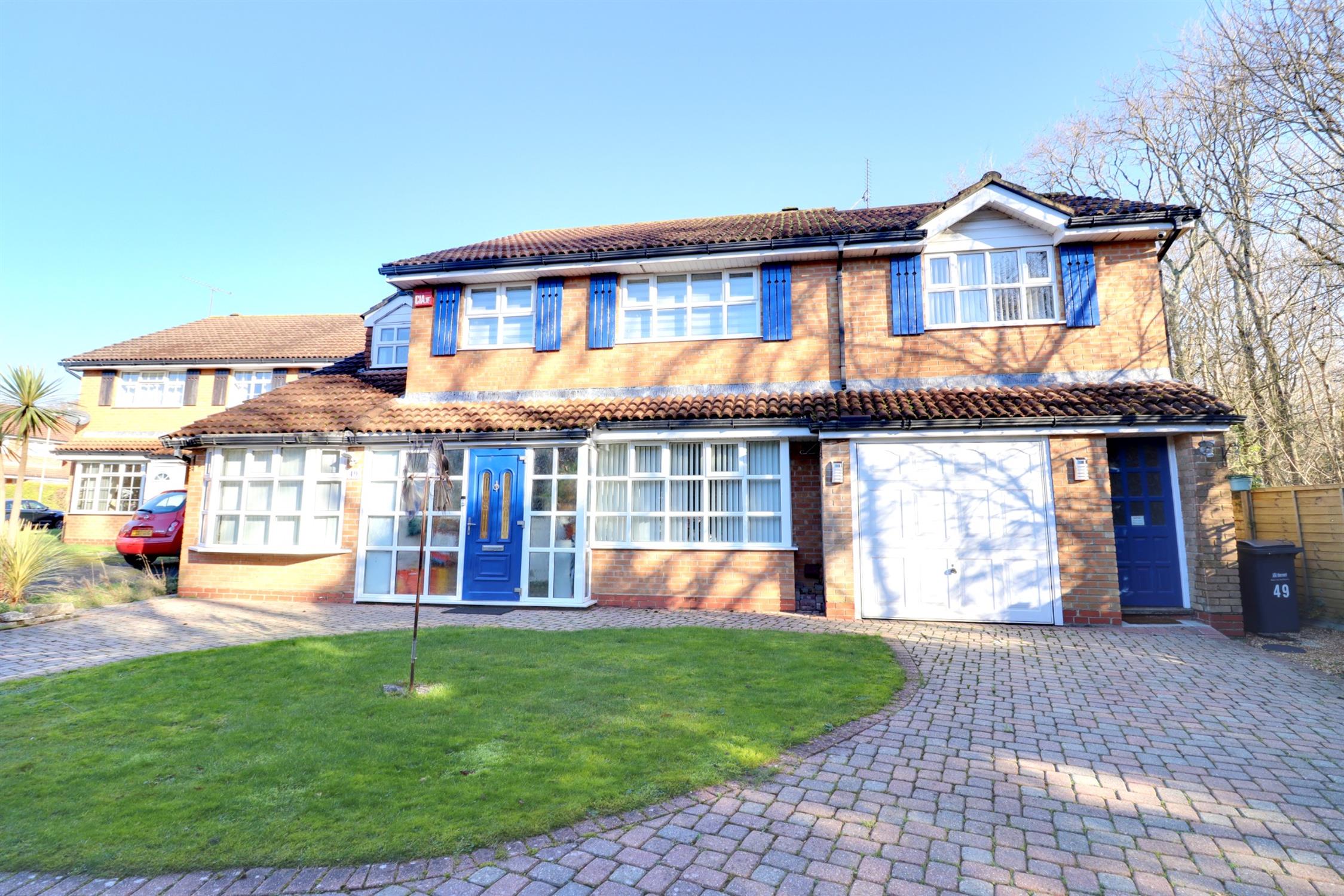 To the front of the property, on the block brick drive, for comfortably five cars leading to the garage.