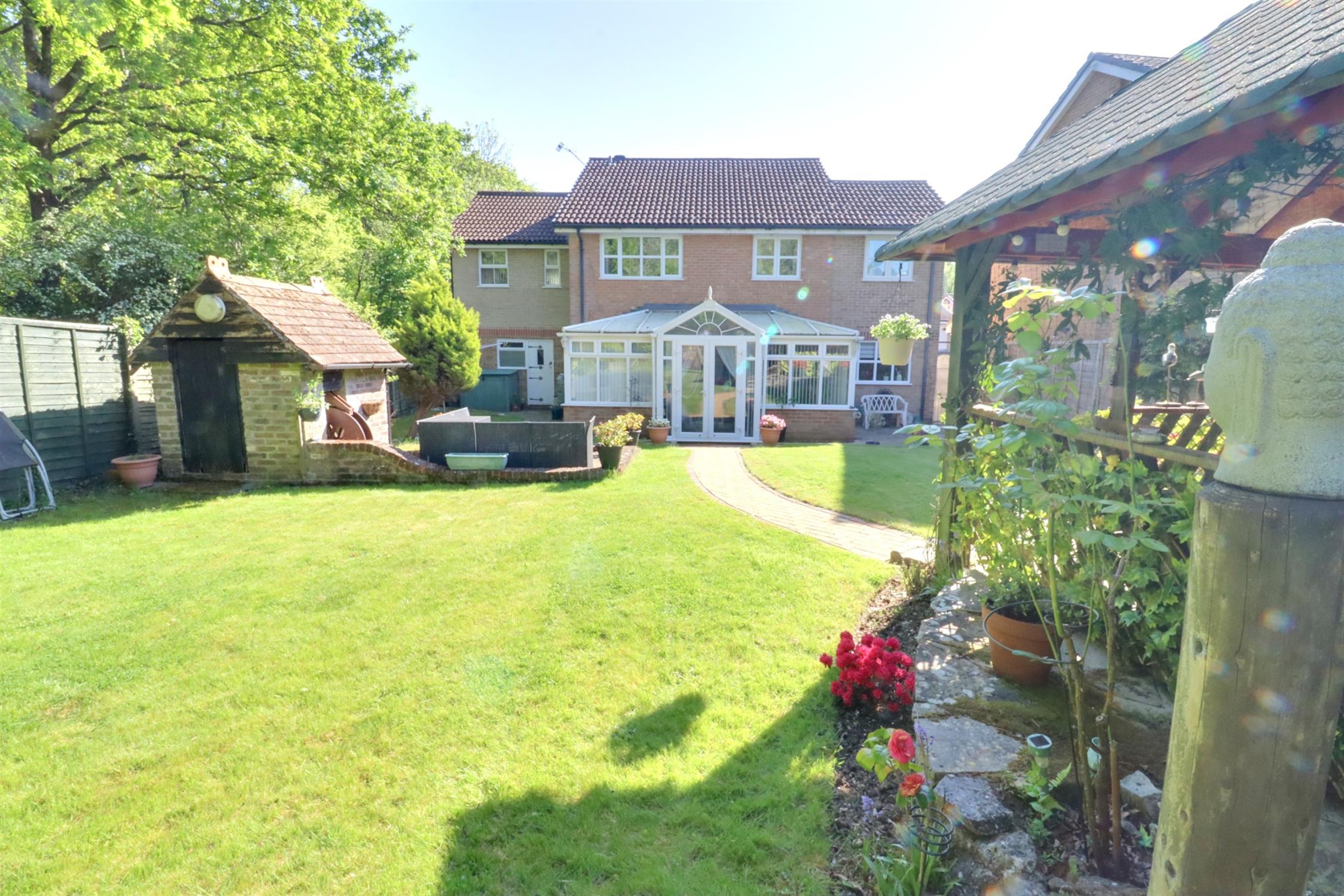 A significantly extended detached family home situated within a private cul-de-sac position with woods to the side, offering flexible accommodation of four/five bedrooms and three/four reception rooms. The accommodation comprises on the ground floor; porch, hall, study, downstairs WC, lounge, dining room, kitchen/breakfast room, utility room and conservatory. On the first floor there are four bedrooms and a further bedroom/studio reception room, en-suite to the master bedroom and bathroom.