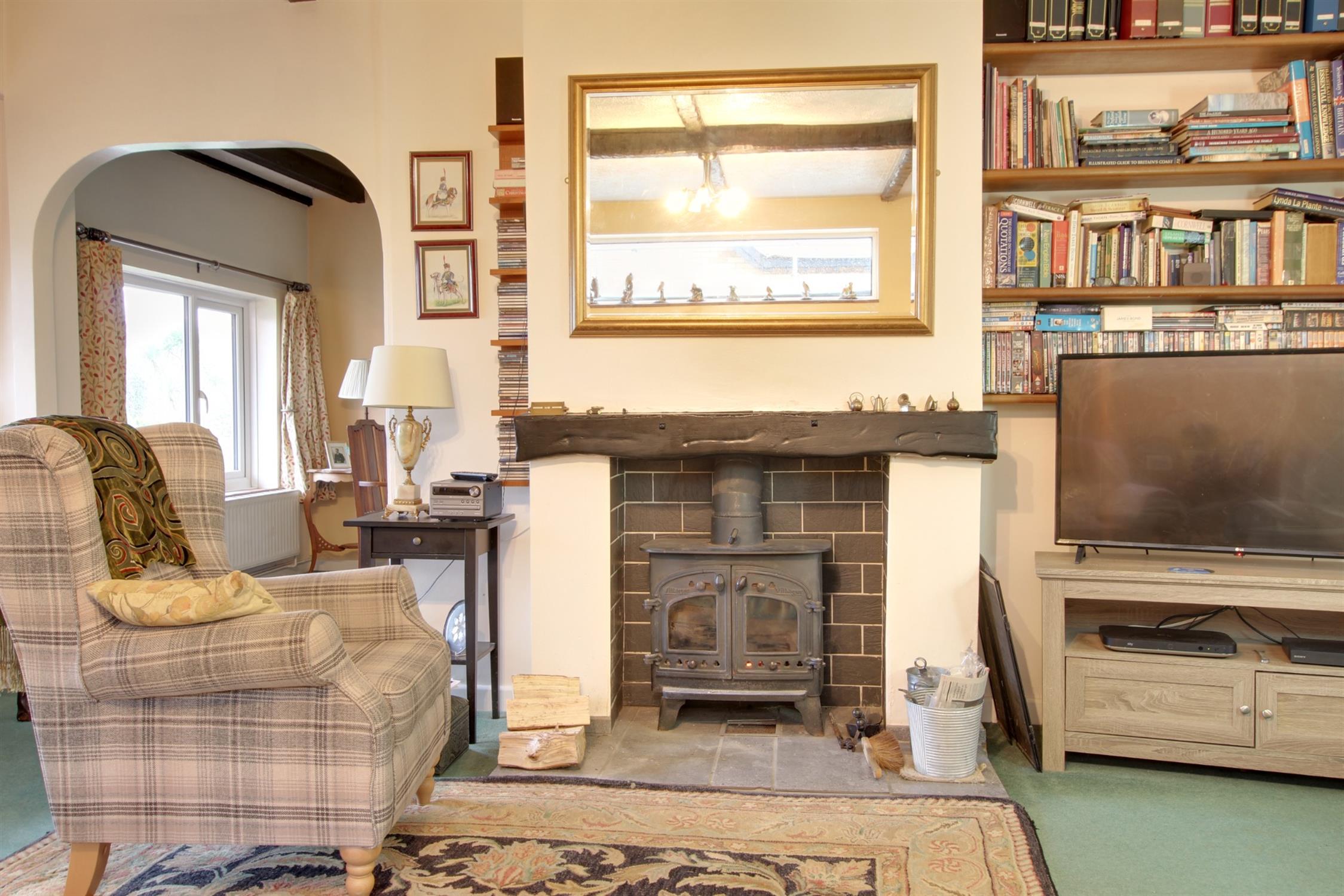 Double glazed room with country views to front and window to side. Feature fireplace with inset wood burning stove. Radiator. Beamed ceiling. Open arch to dining room