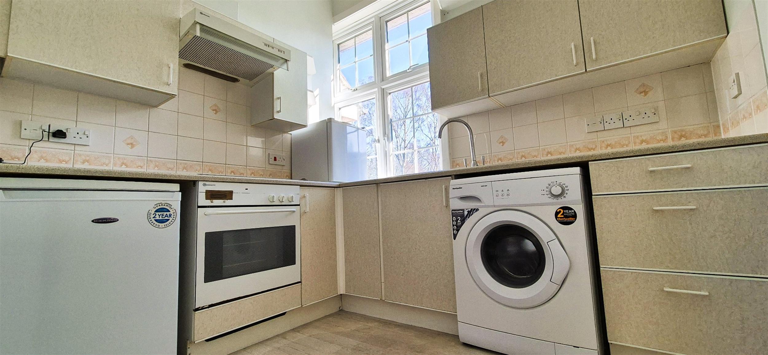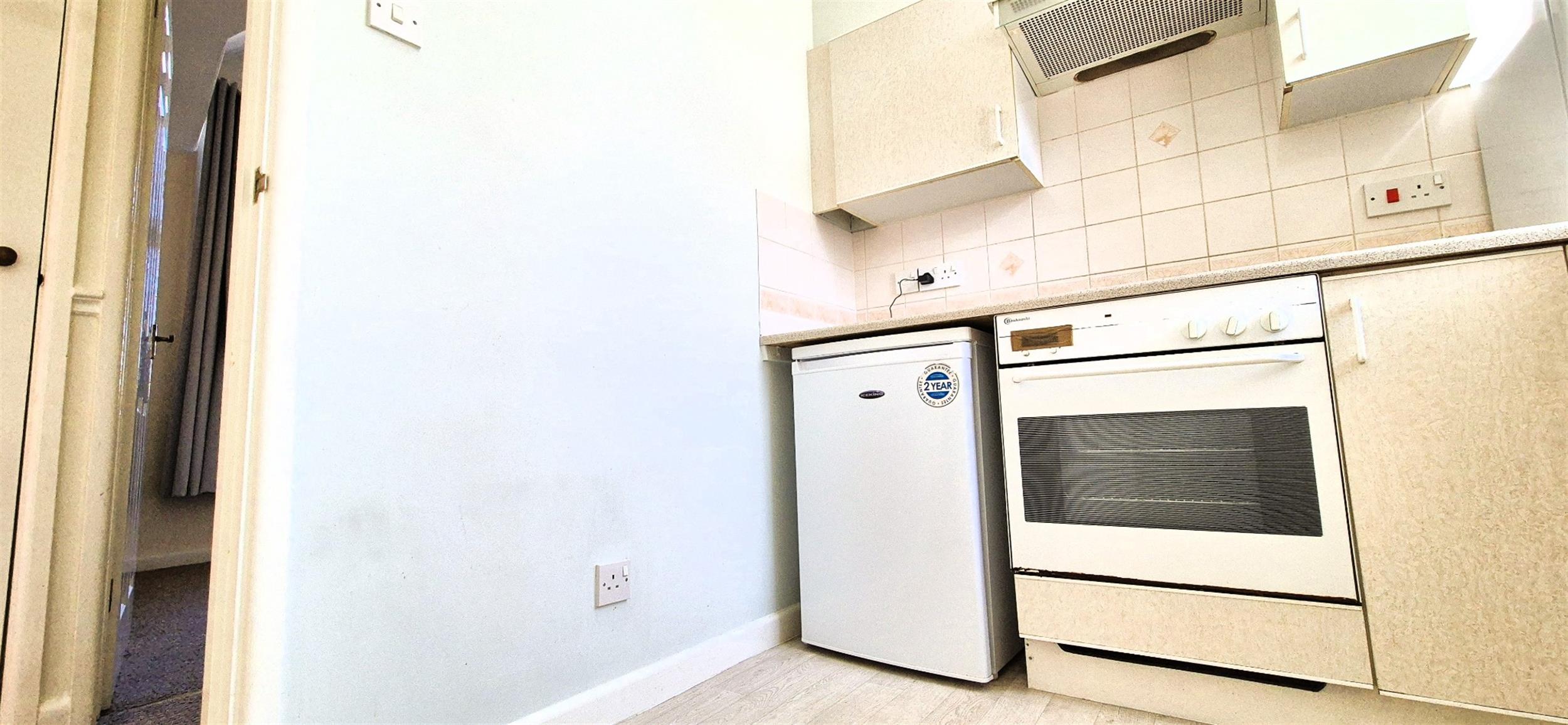 KITCHEN: Wall and base units. Window to rear. Appliances consisting of: electric hob, electric oven, fridge with small freezer box, washing machine and small freezer.