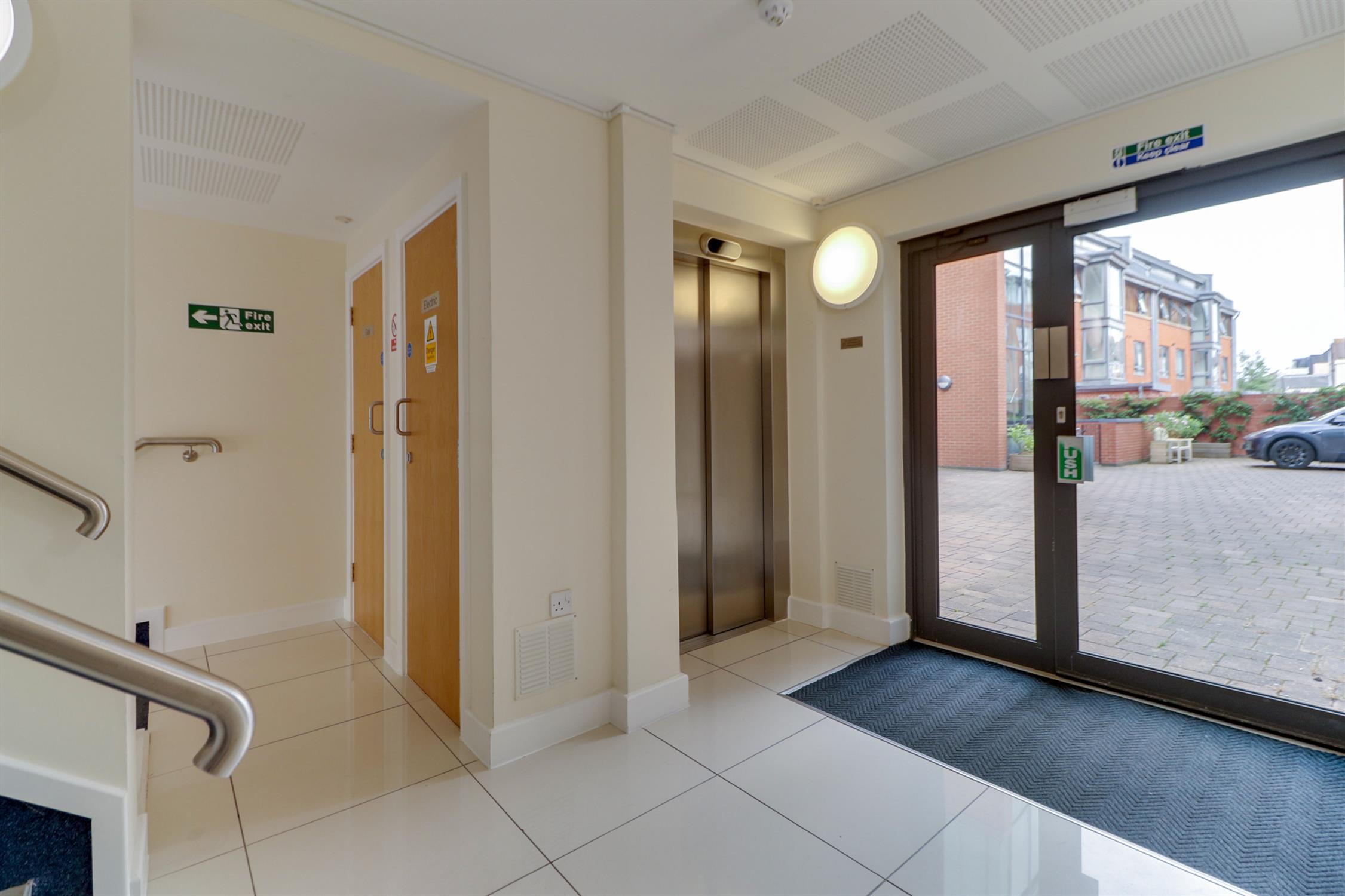 Enter via communal door with secure intercom entry system to;