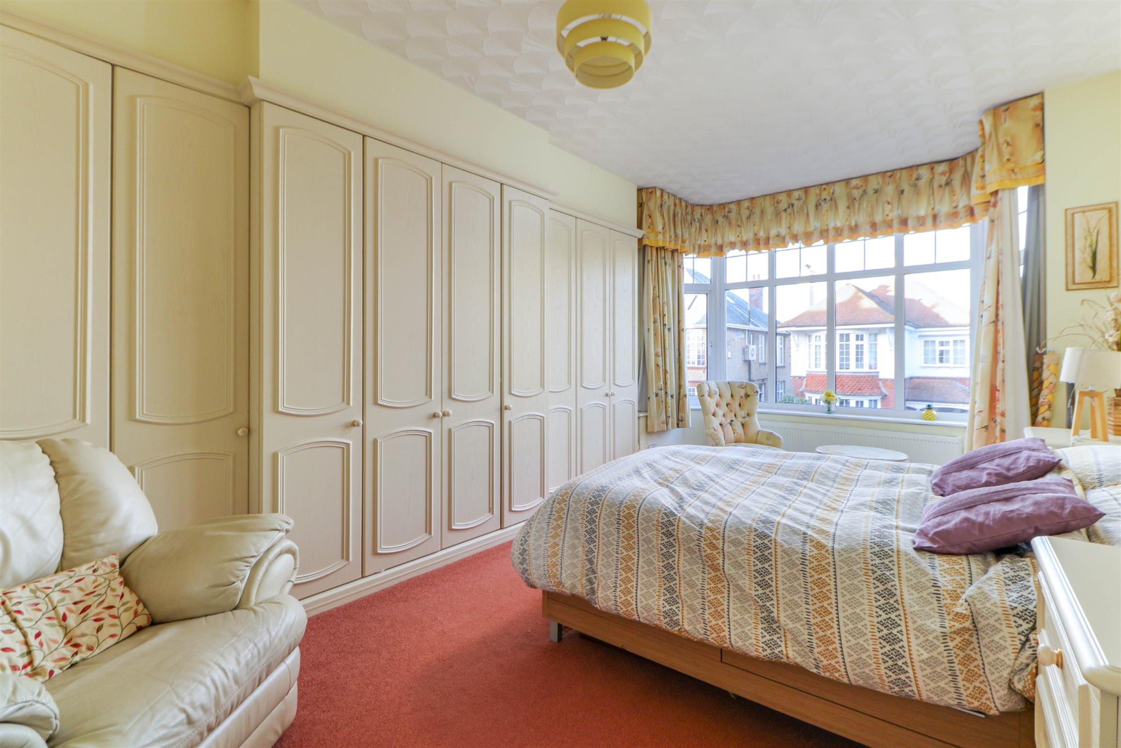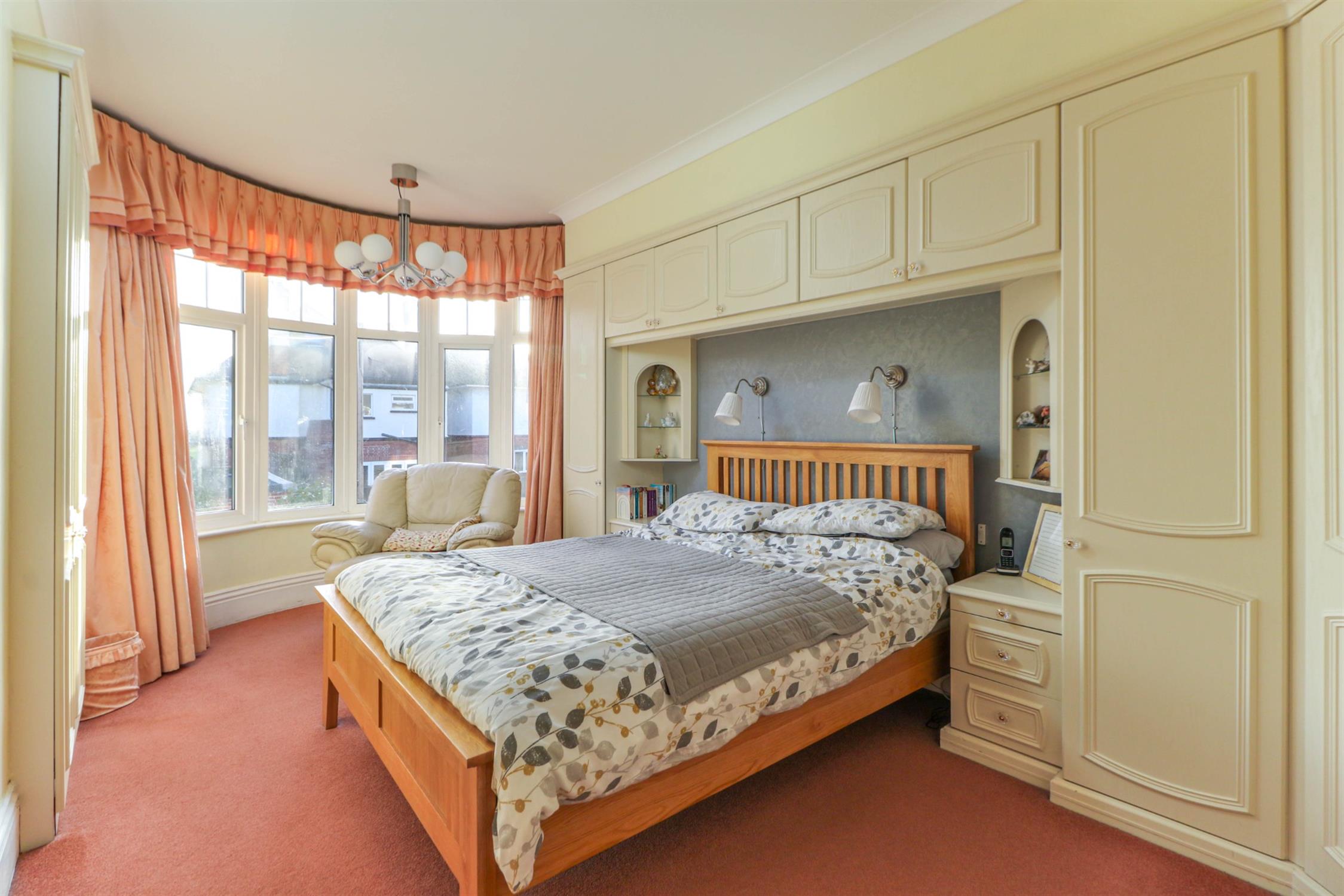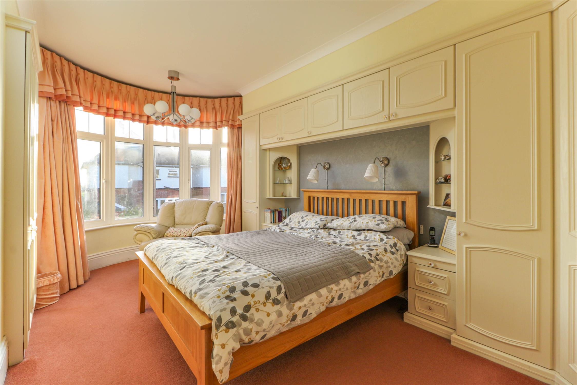 Smooth and coved ceiling, double glazed curve bay windows with views of the sea through houses at the rear, radiator, range of fitted bedroom furniture, discreet entrance to: