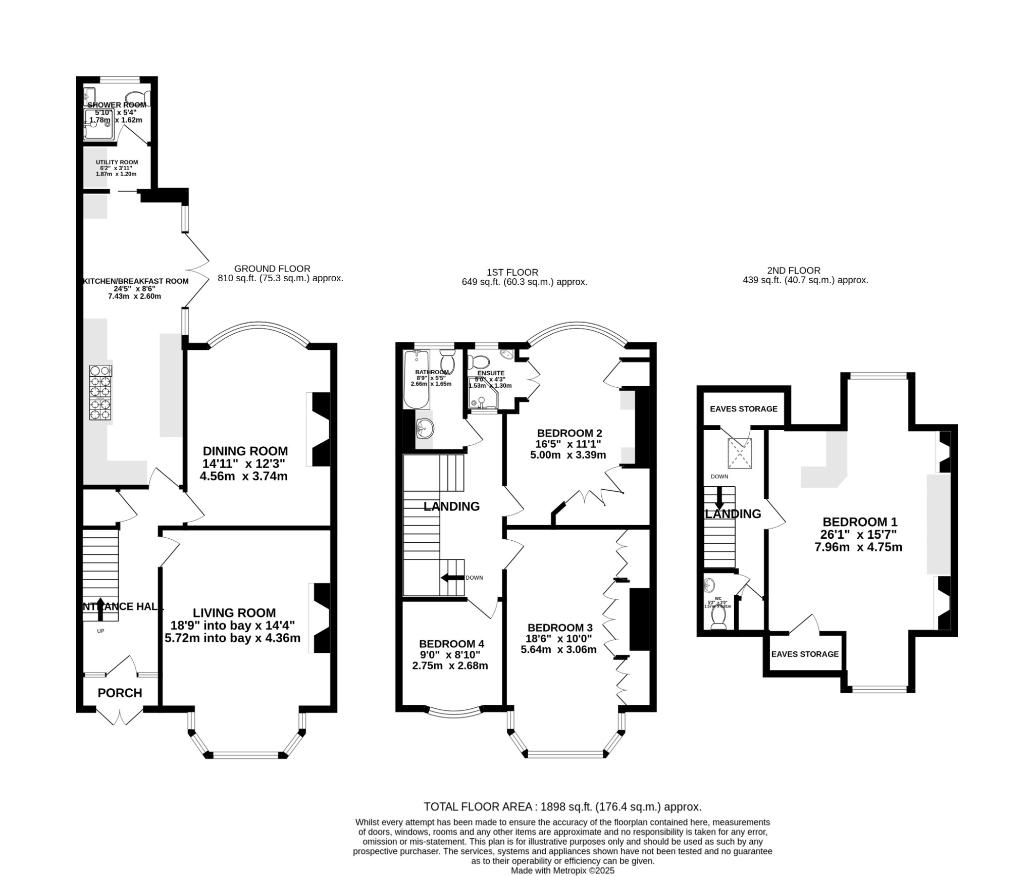 A separate utility room adds practicality, while a convenient downstairs shower room enhances the home’s flexibility for guests or busy family life. On the first floor are two well-proportioned double bedrooms, both enjoying attractive bay windows. The rear double benefits from an en-suite shower room and offers pleasant sea views between neighbouring houses. A further single bedroom and a family bathroom complete this level. The top floor hosts a spacious fourth bedroom, currently arranged as a bar, lounge and work room, and could be ideal as a principal suite, guest room or home office, complemented by a separate WC. Externally, the property enjoys a south-facing, low-maintenance rear garden, perfect for outdoor dining and relaxation. There is also the added benefit of a single garage. The home is generally well presented throughout with opportunity for a buyer to modernise and personalise to their own taste. Located within easy reach of Southsea seafront this is a substantial and appealing property in a highly regarded location.
