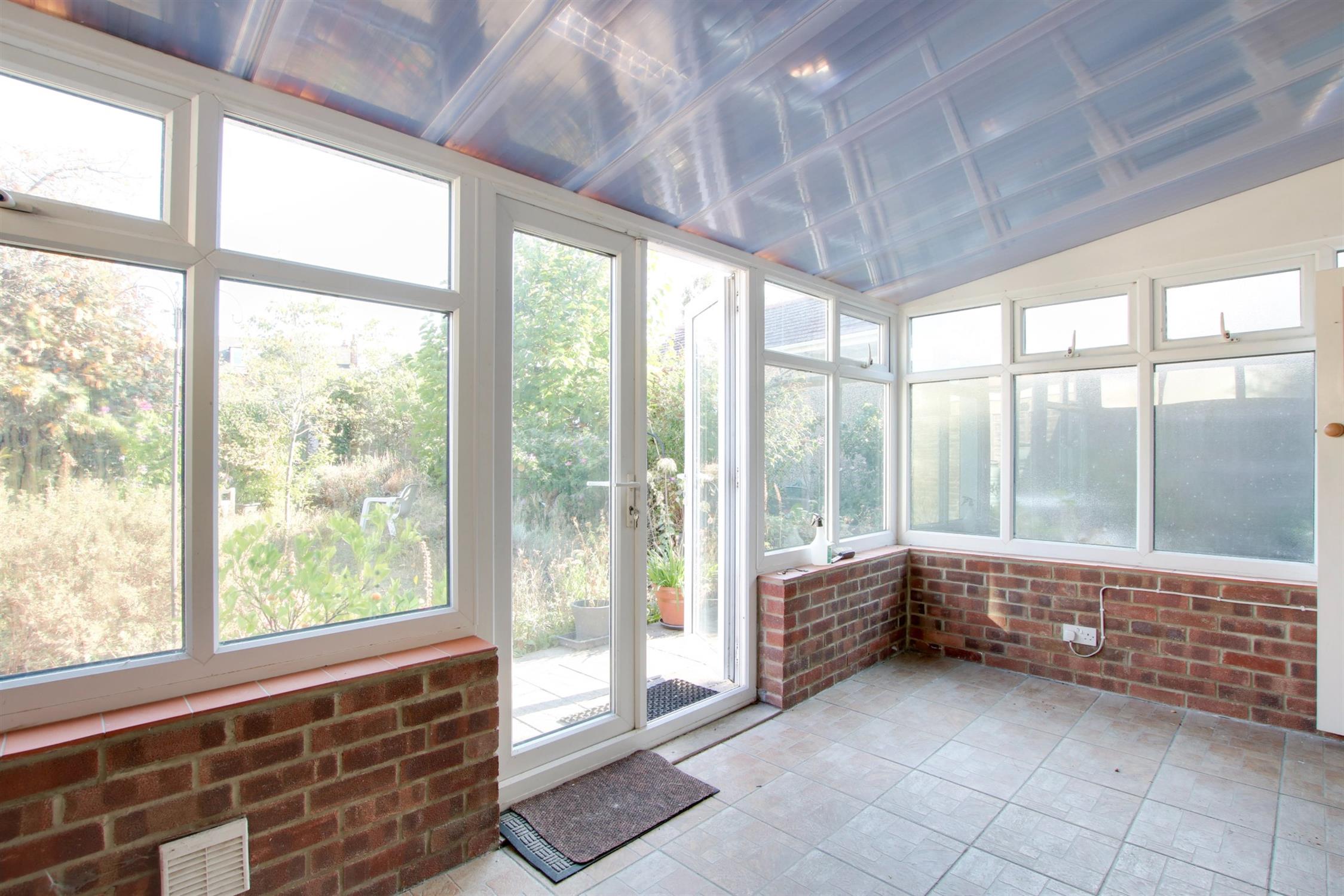 Double glazed lean-to conservatory with double glazed French doors leading to garden. Tiled flooring. Door to: