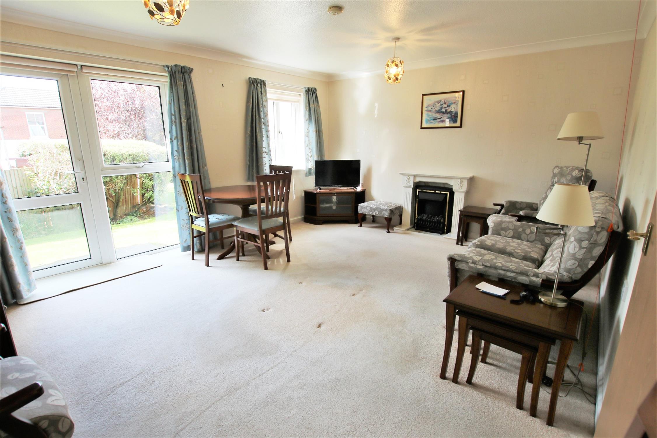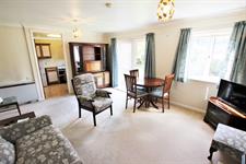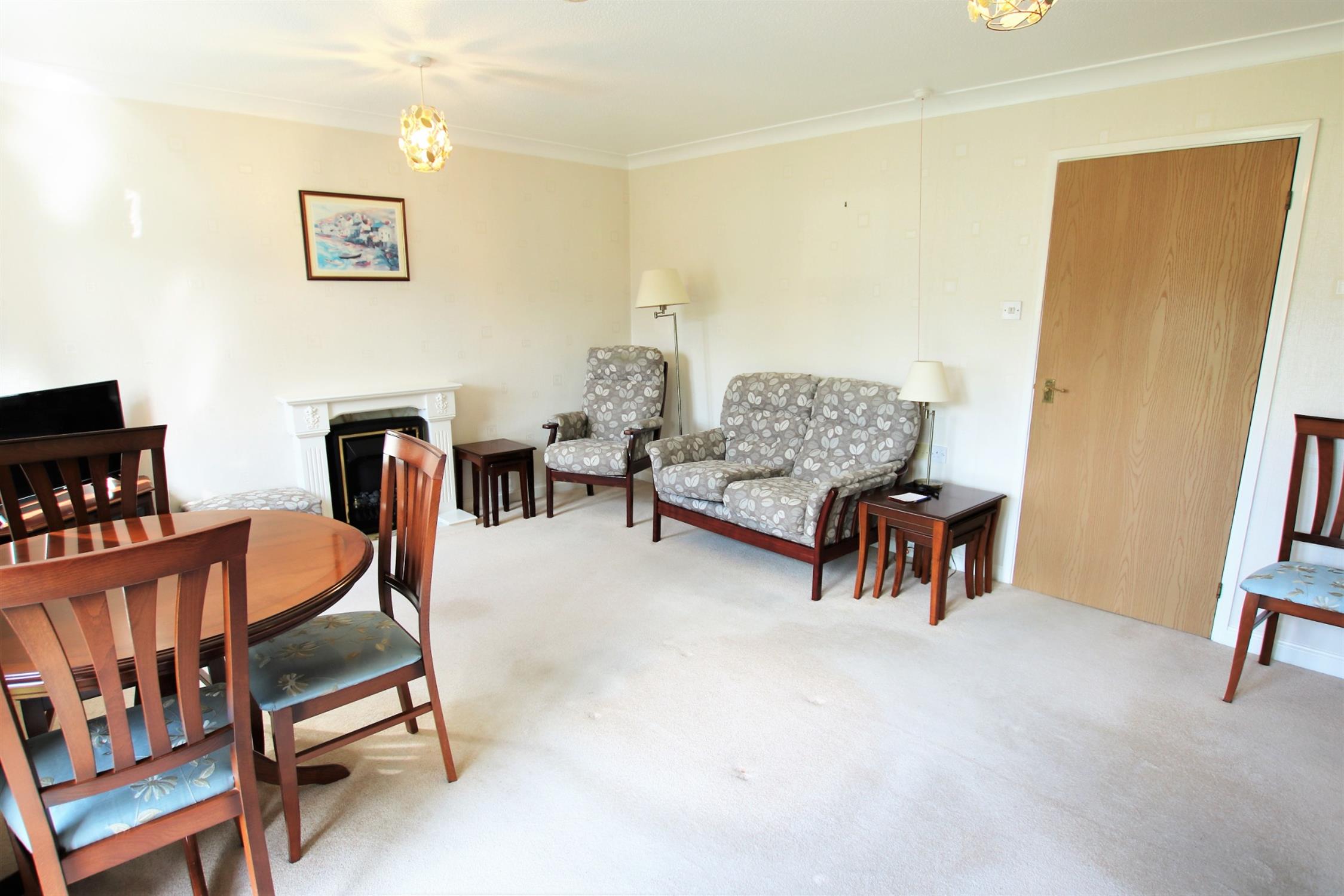 Double-glazed door and window providing access to and overlooking the communal southerly aspect gardens with sun terrace, electric storage heater, further double-glazed window, electric fire with decorative timber surround, TV aerial point, telephone point, Dimplex electric storage heater, emergency pull cord, doors to: