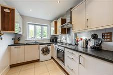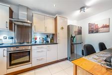 Fitted with a range of units incorporating base, drawer and wall units with complimentary worktop. One and half bowl sink with mixer tap over. Integrated NEFF electric oven and gas hob with extractor over. Integrated dishwasher. Space for a washing machine and free standing fridge/freezer. Cupboard housing a Glow Worm boiler. Tiled floor. Inset lighting. Double glazed window to the front aspect.