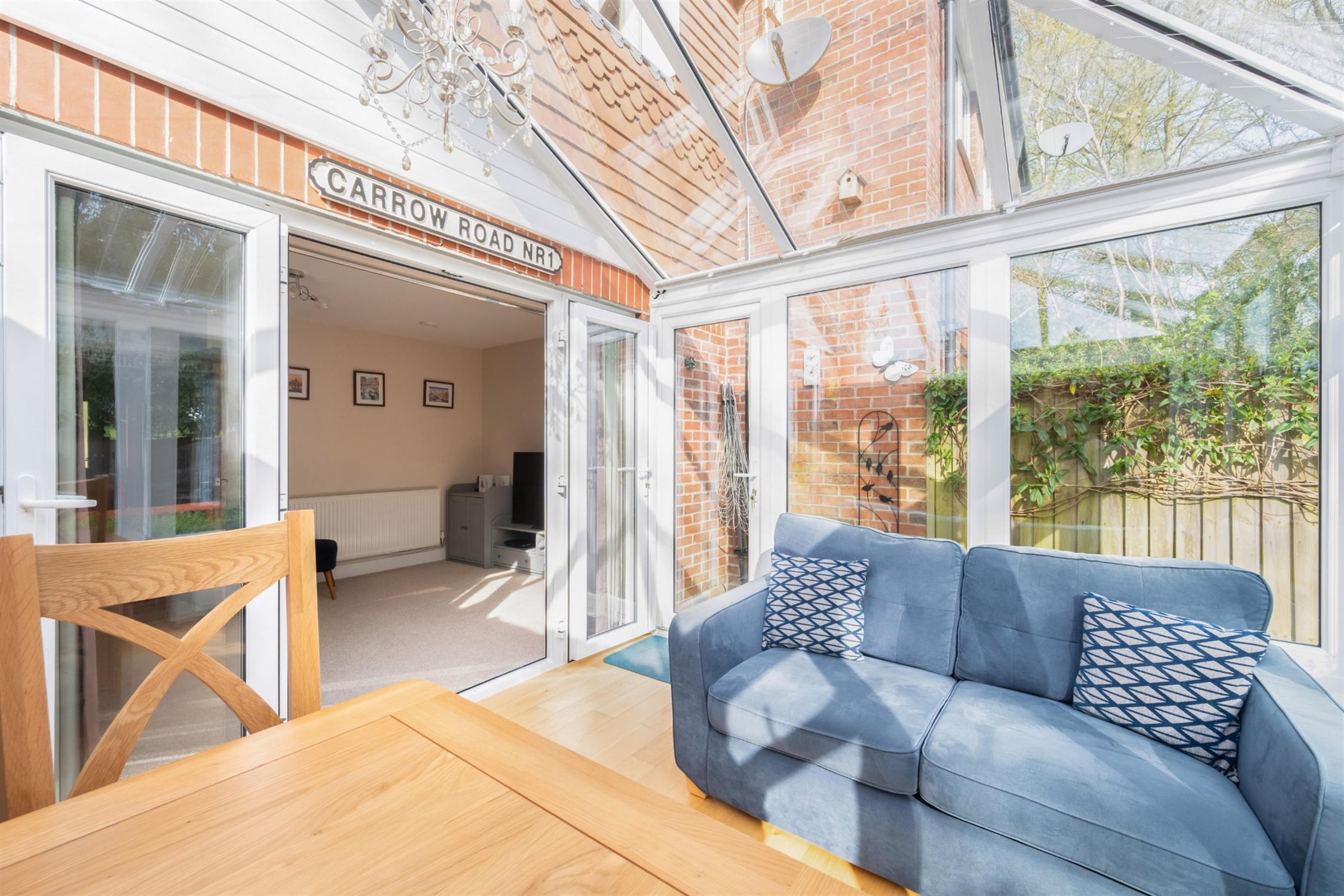 Under-stairs storage cupboard. Radiator. Double glazed patio doors leading into the conservatory.