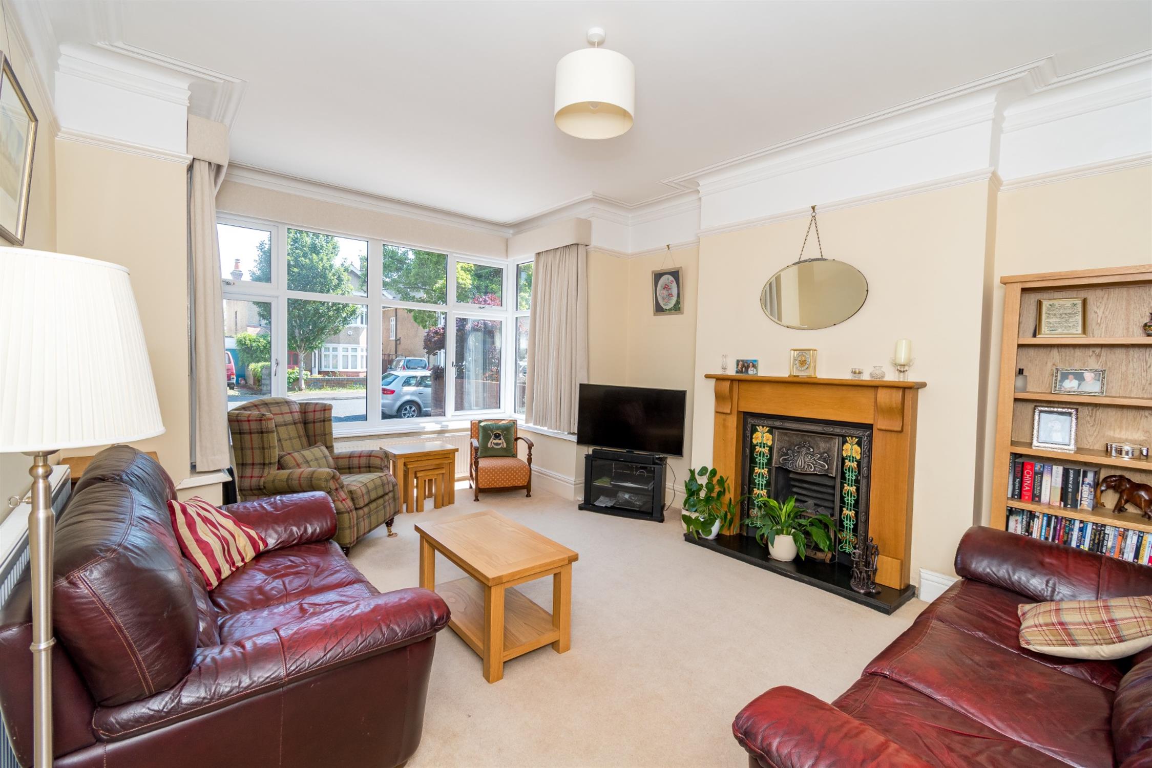 Double glazed box bay window to front aspect. Period plaster coving to smooth ceiling. Picture rail. Two radiators. Feature fireplace with inset living flame gas fire.