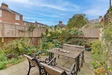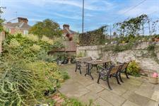 Rear - Side pedestrian access, walled west-facing garden, mostly laid to patio with mature planted borders.