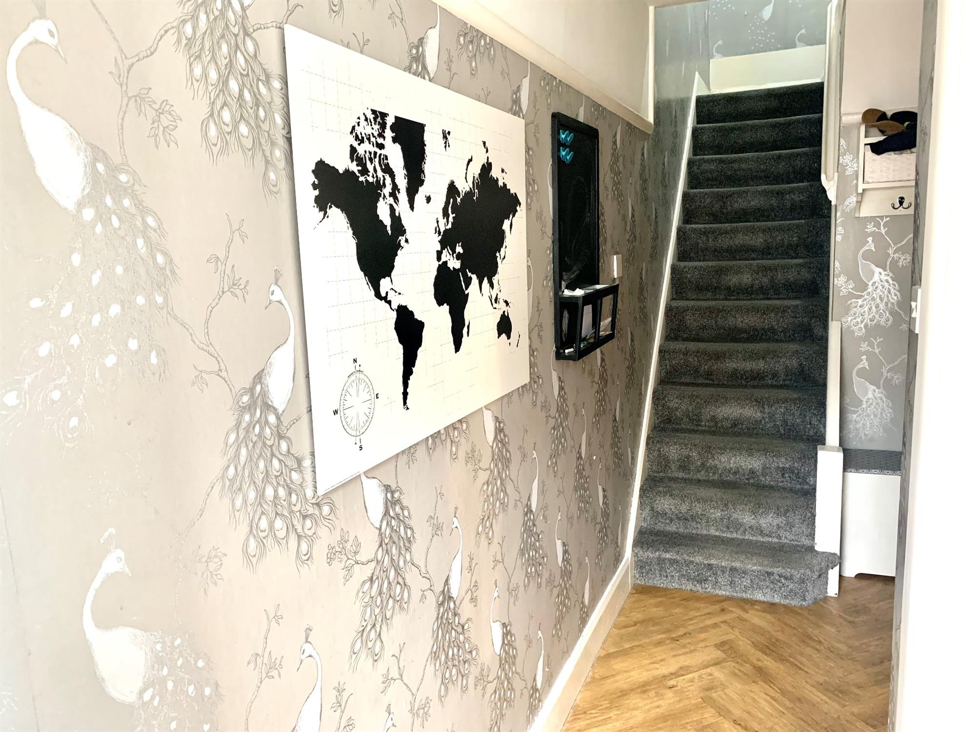 ENTRANCE HALLLaminate flooring with stairs to first floor and doors to the lounge and bedroom.