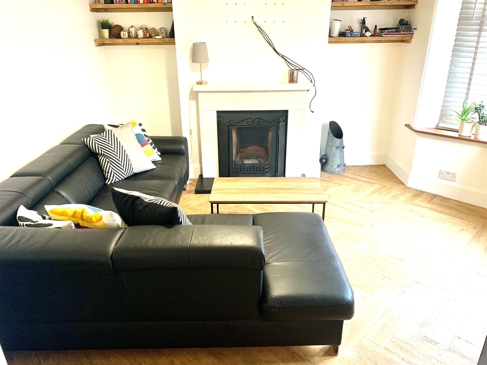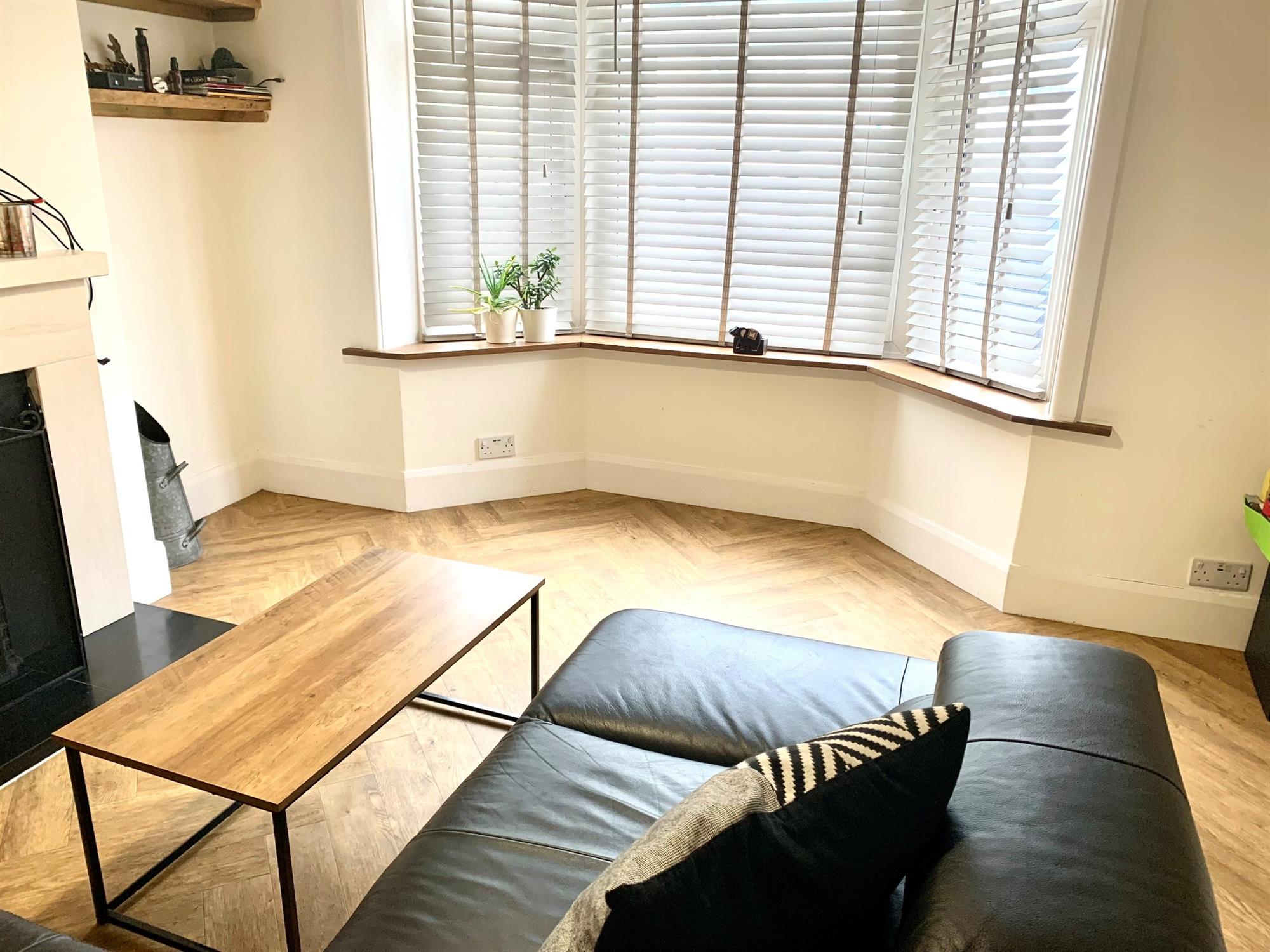 LOUNGELaminate flooring with large bay window to front and open fireplace.