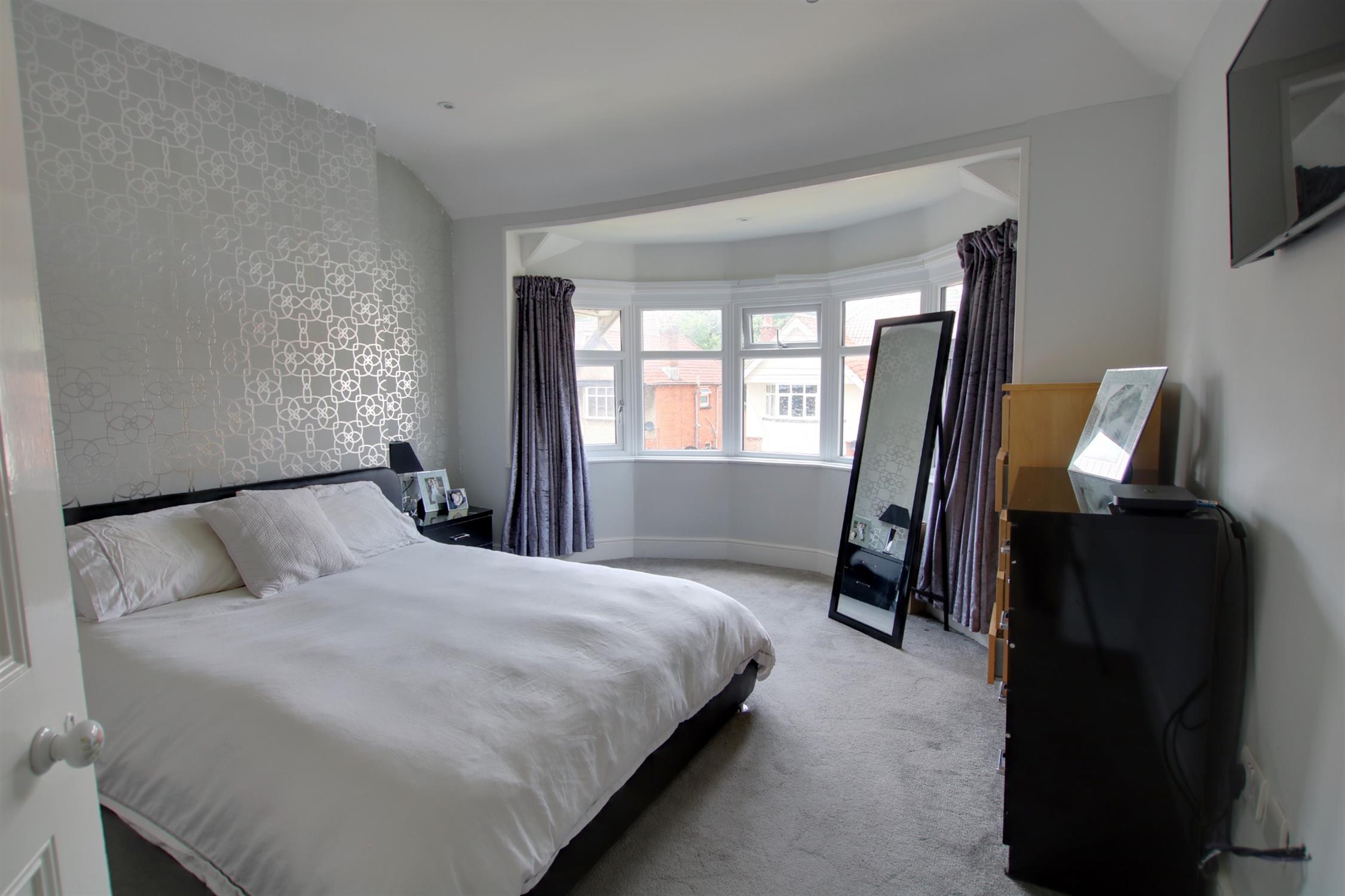 Double glazed bay window to front aspect. Period plaster coving and picture rail. Laminate flooring. Radiator. Fitted cupboards to chimney recess.