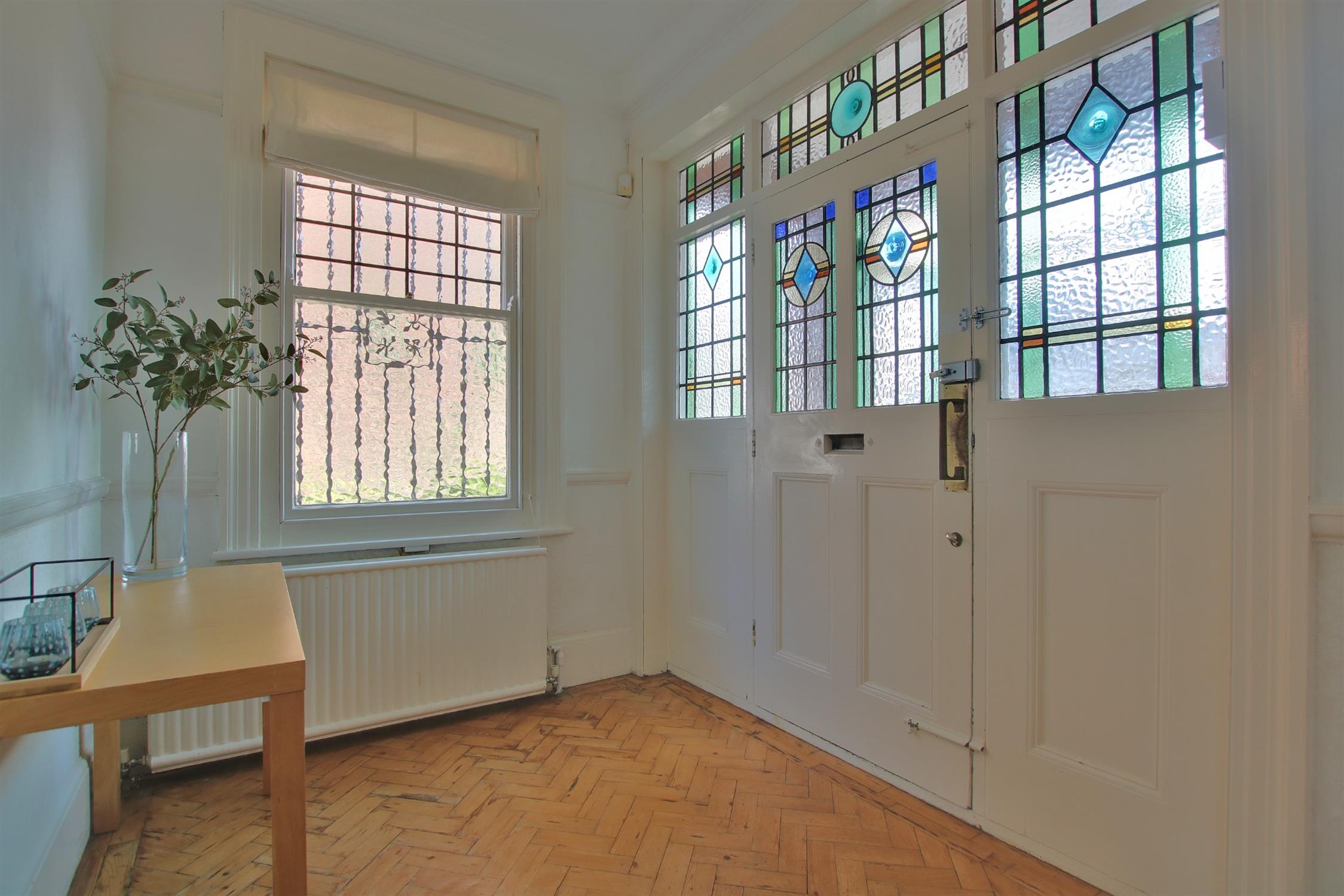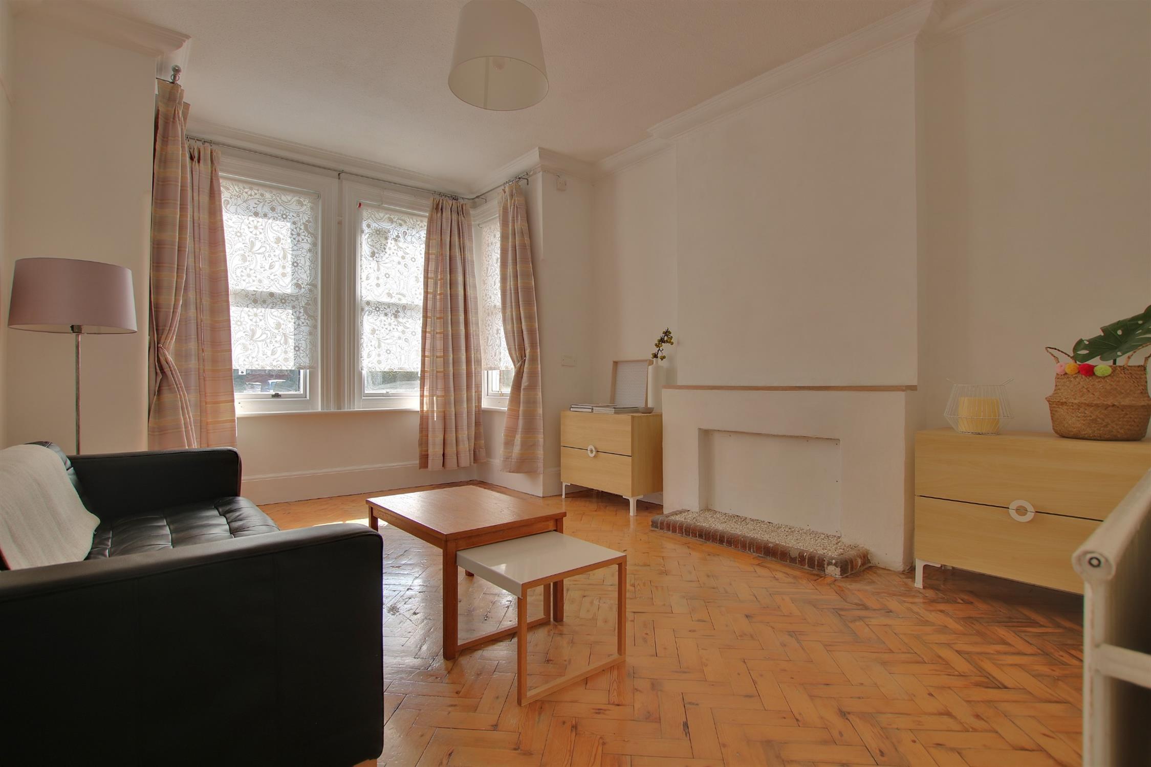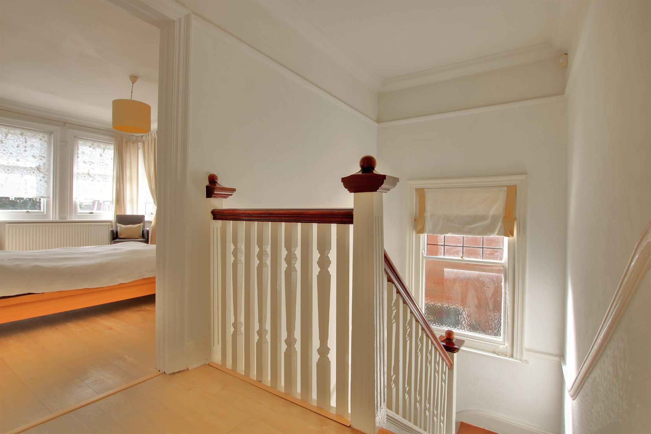Wooden parquet flooring. Raidator. Square bay with sash windows.
