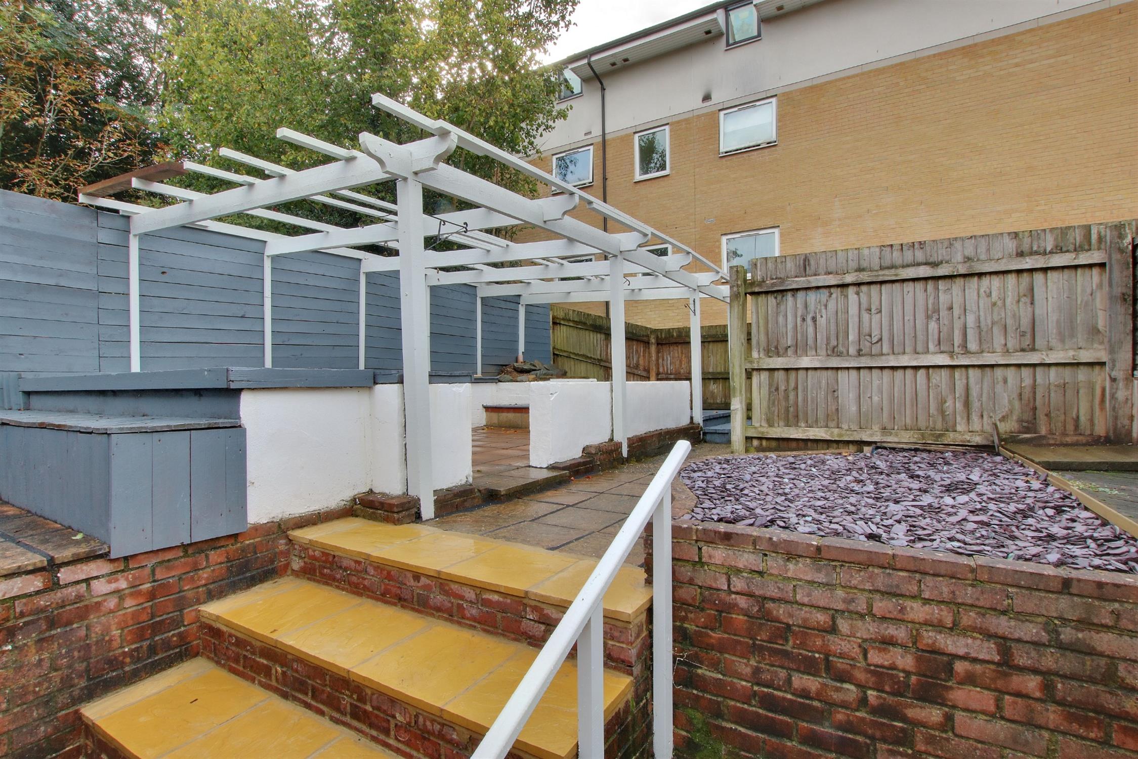 Low maintenance paved garden which is south-westerly facing. Access to lean to from side. Off street parking at the front and also the rear of the property.