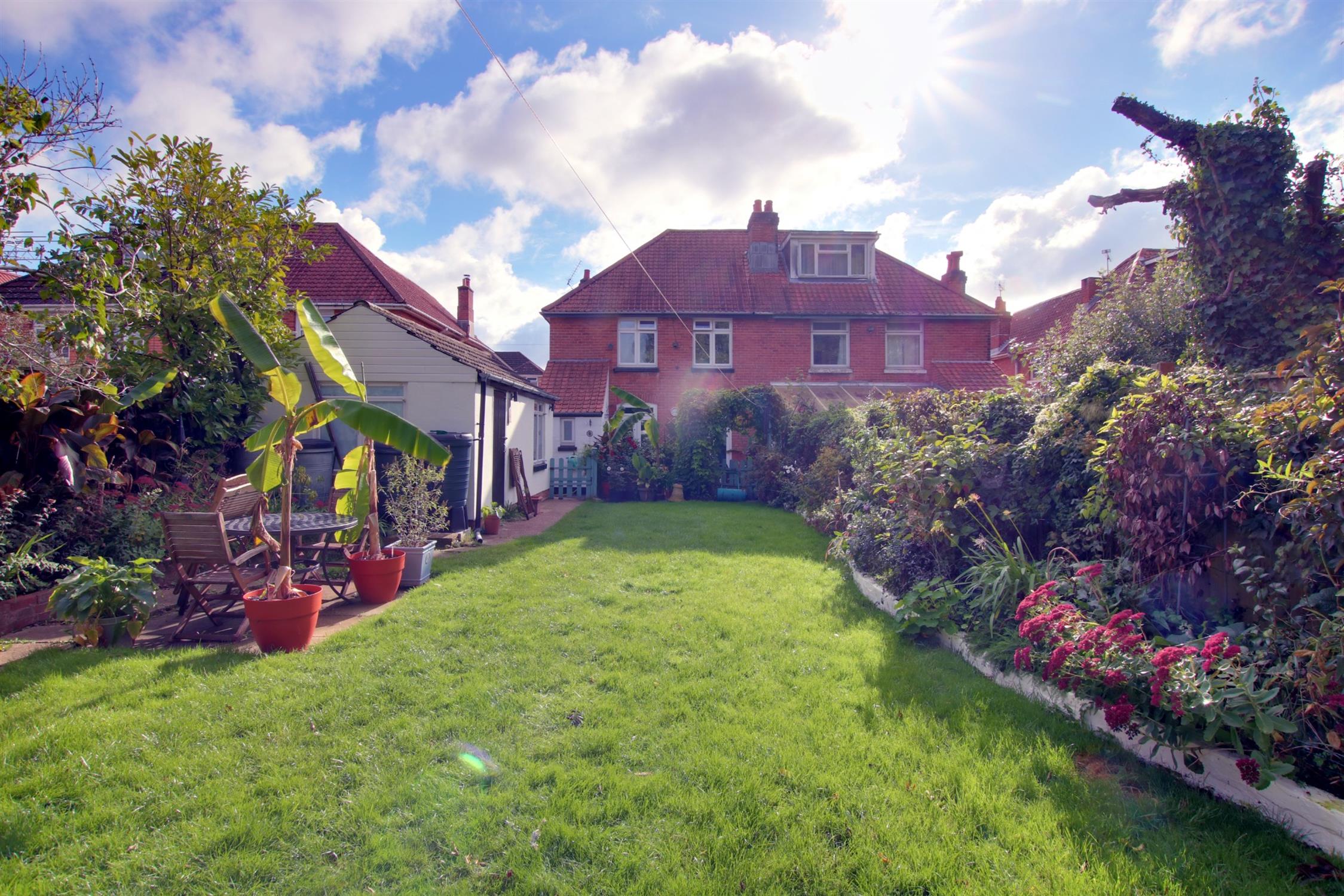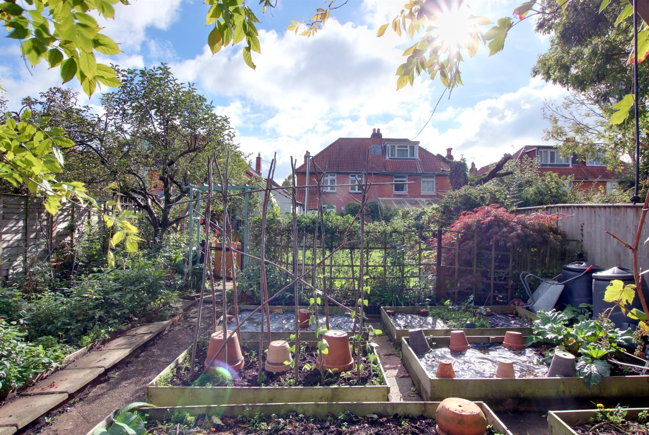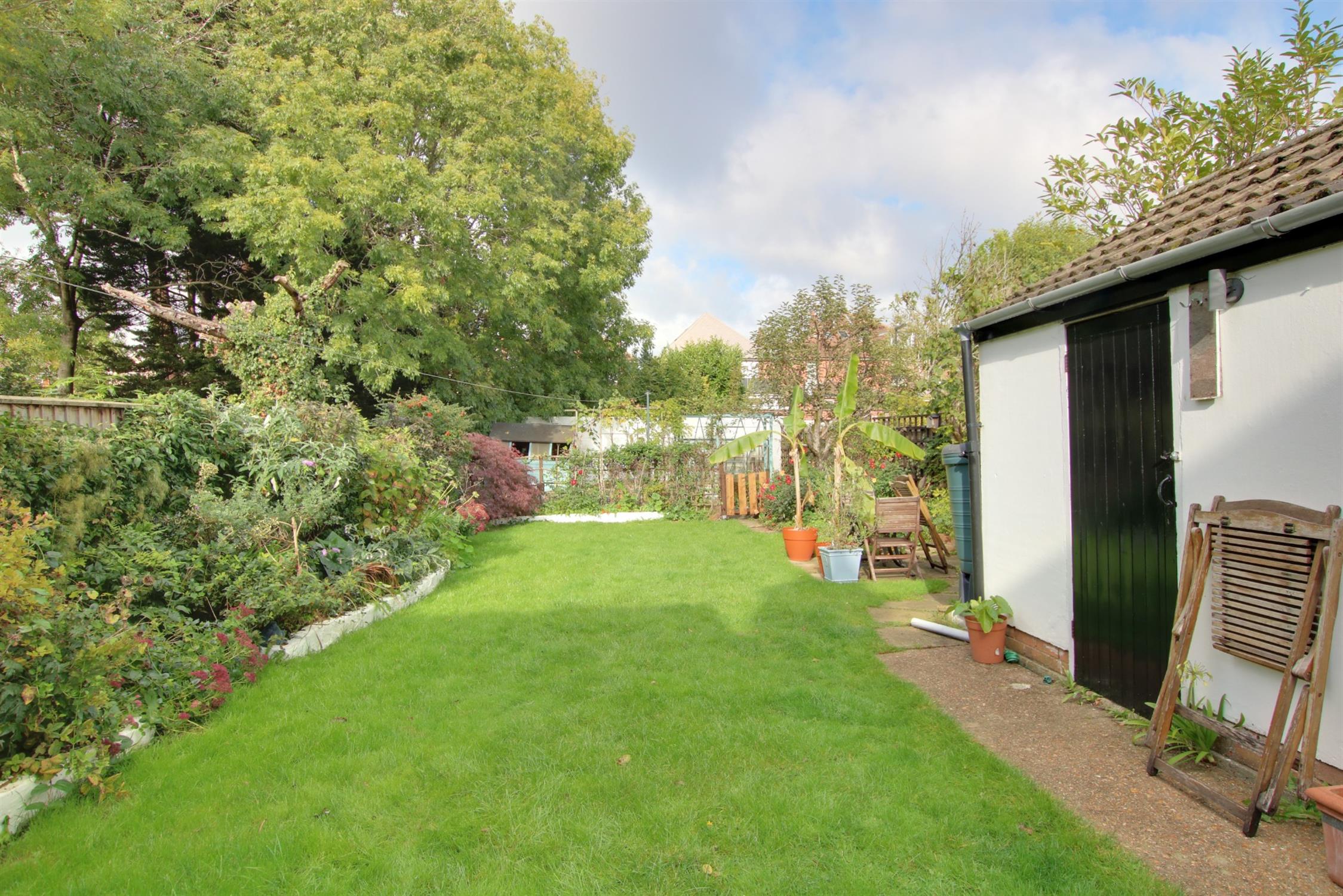 The rear garden is fully enclosed and has the benefit of a westerly aspect with paved patio seating area, a well proportioned vegetable plot to the rear of the garden with garden shed and greenhouse. The remainder of the garden is principally laid to lawn with established flower and shrub borders as well as a DETACHED GARAGE with double doors, personal door to side, windows to side and rear aspects, power and light.