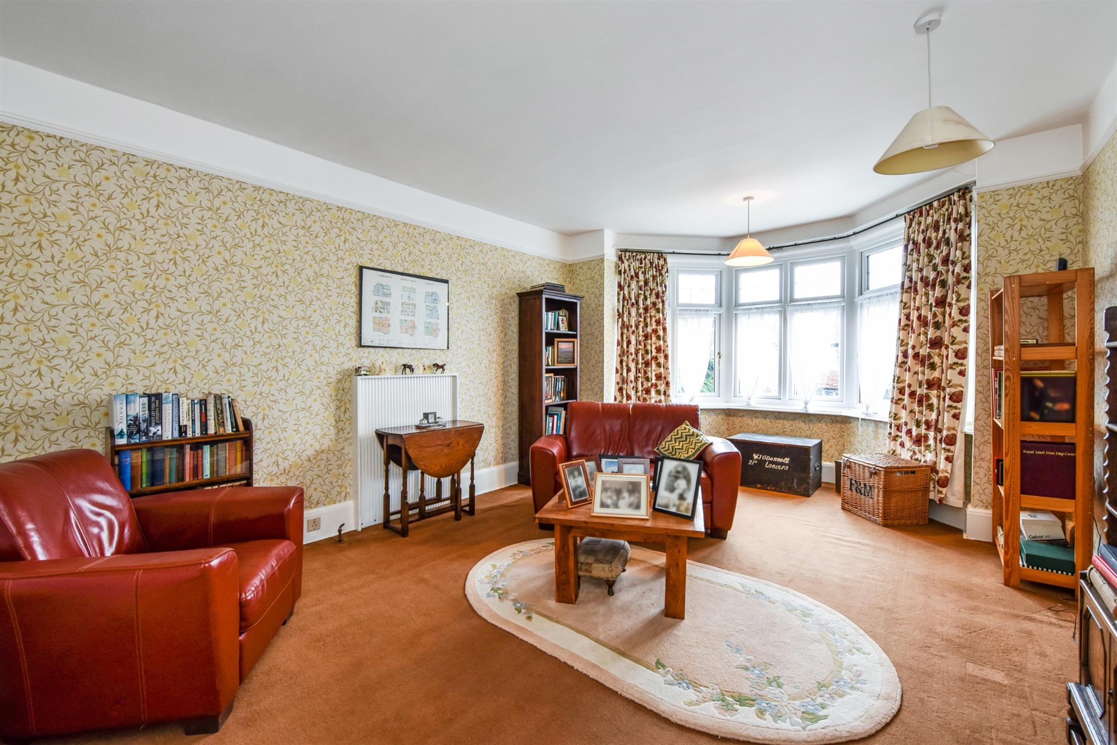 SITTING ROOM 17' 6" (5.33m) into bay x 13' 1" (3.99m)::