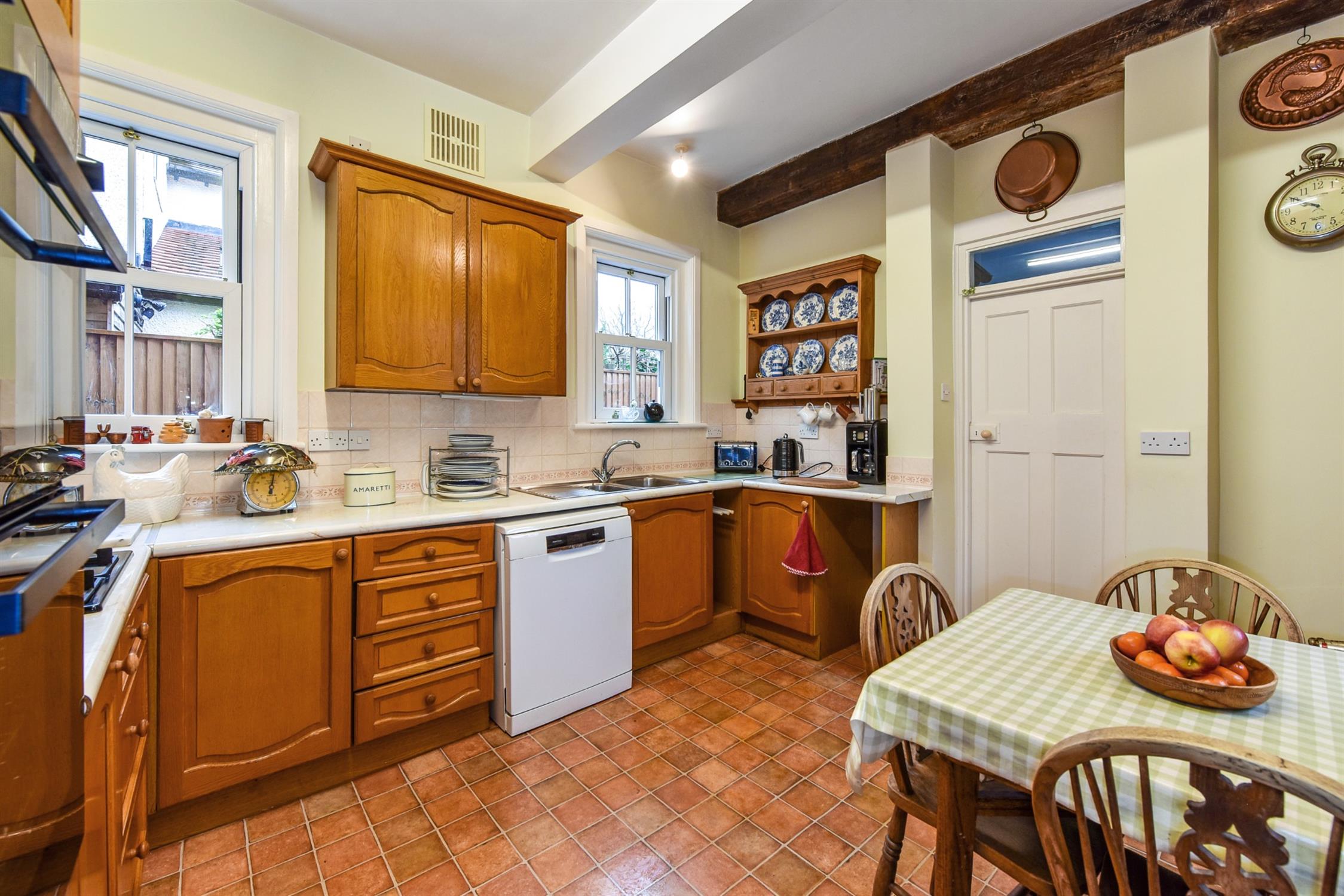 This particular house has a driveway providing off road parking which leads to a detached garage and the generous rear garden is well kept with lawns and borders including a mature rose garden.
