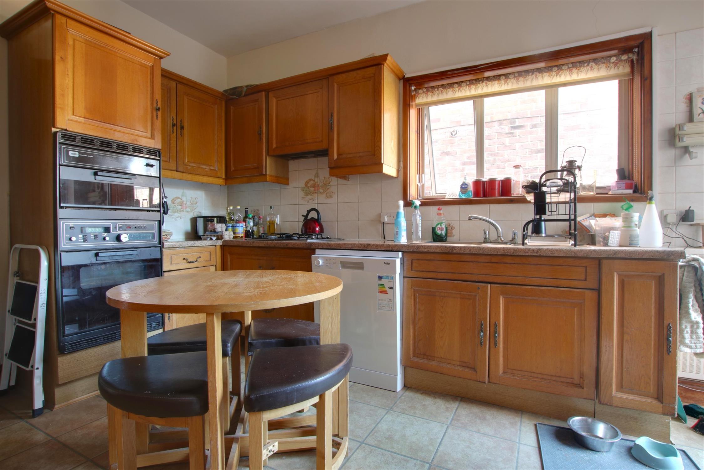 Double glazed window to side aspect. Double glazed door opening onto rear garden. Smooth ceiling. Single drainer one and a half bowl sink unit with mixer tap and cupboard under. A range of eye level and base mounted kitchen units with roll top work surface over. Built-in oven and grill. Fitted four ring gas hob with extractor over. Space and plumbing for dishwasher. Space for fridge/freezer. Radiator.