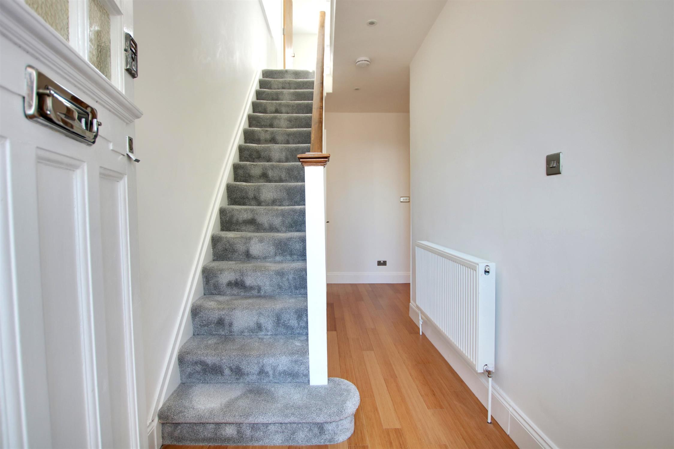 Obscure glass window to front aspect. Smooth ceiling with recessed lighting. Stairs to first floor. Under stairs storage cupboard. Radiator. Bamboo flooring. Doors to all rooms.