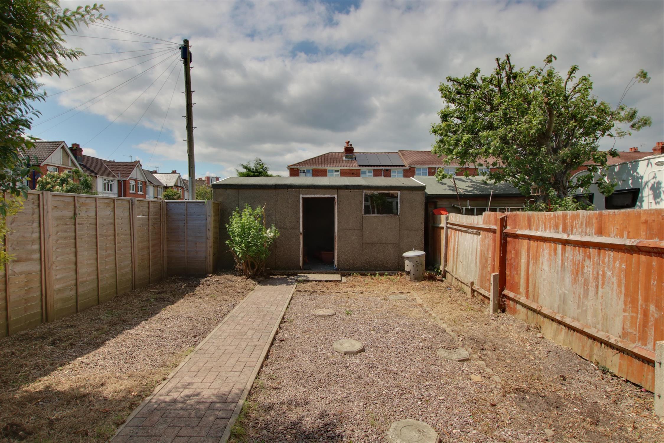 The rear garden is fully enclosed and is principally laid to shingle. Outside tap. Gated pedestrian access to the side and GARAGE 16' 2" (4.93m) x 8' 6" (2.59m) positioned to the rear of the garden with personal door to side, up and over door.