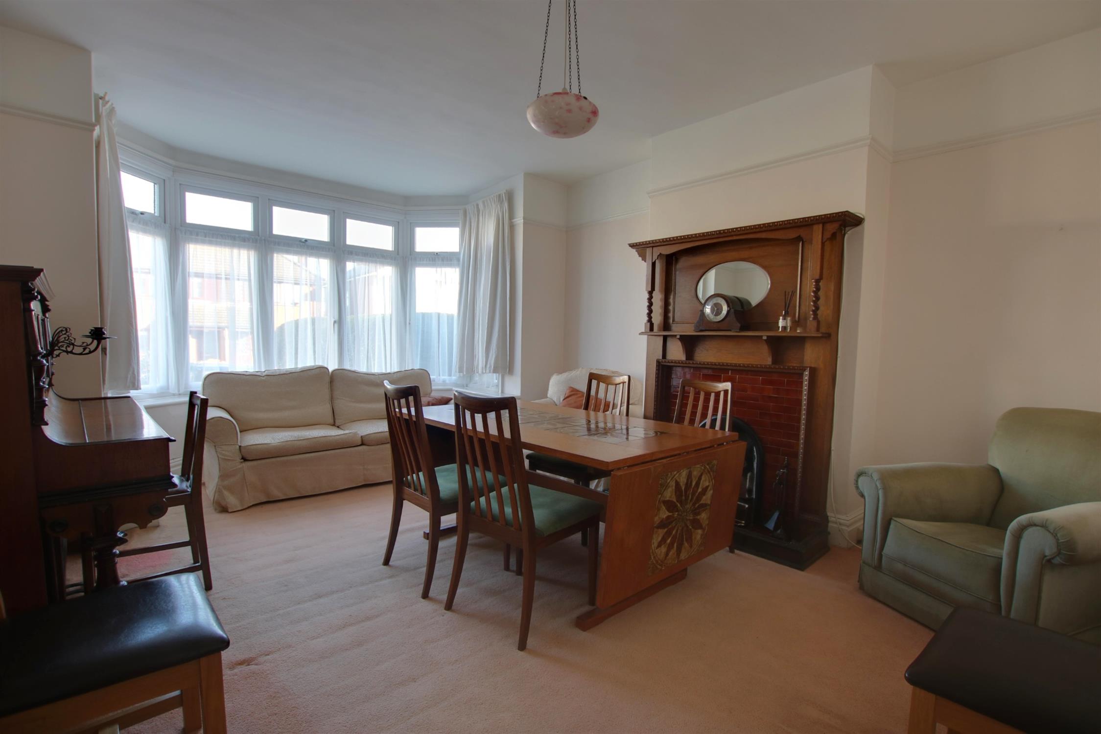 Double glazed bay window to front aspect. Smooth ceiling. PIcture rail. Radiator. Open fire.