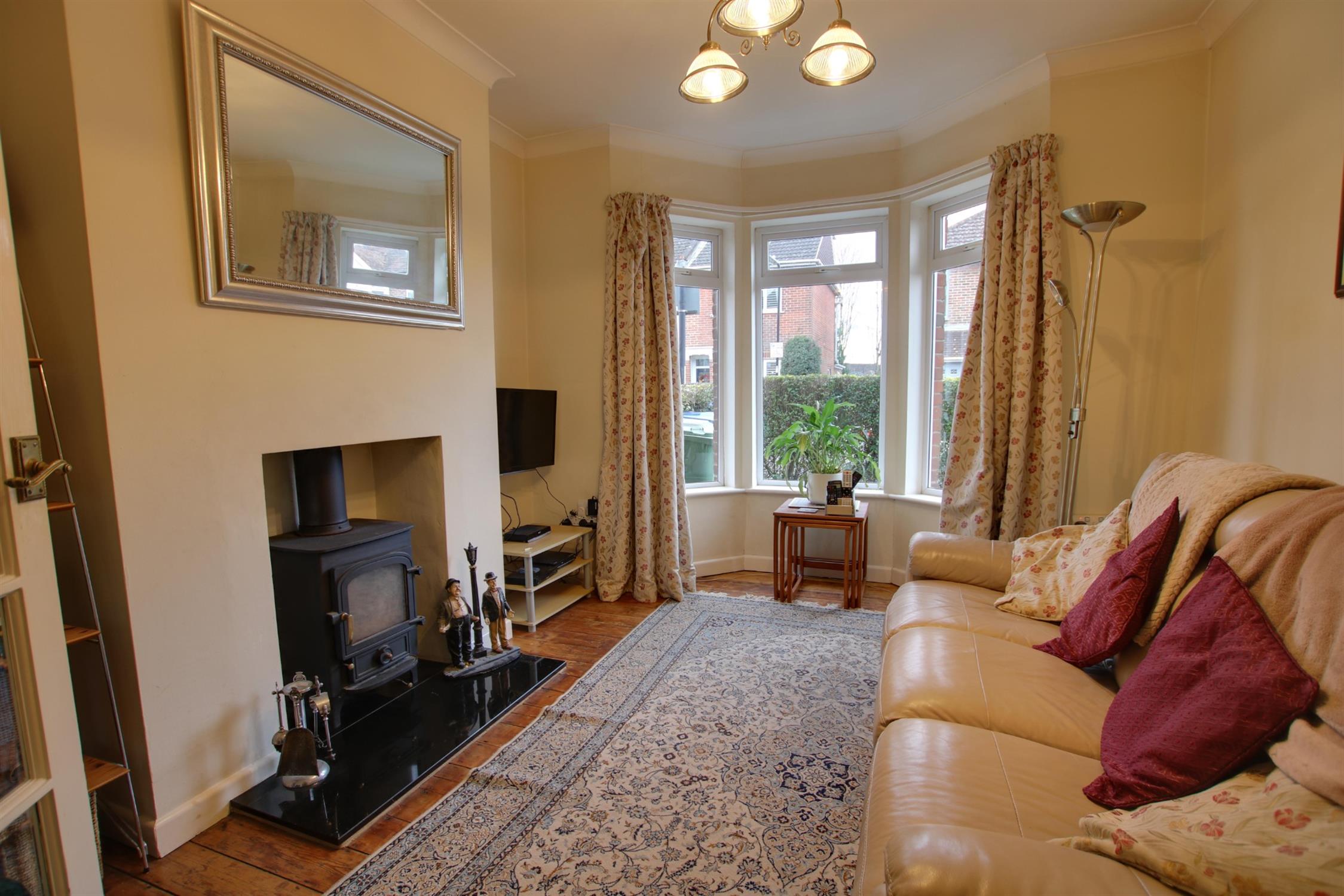 Bay window to front aspect. Coving to smooth ceiling. Radiator. Stripped wood flooring. Wood burner.
