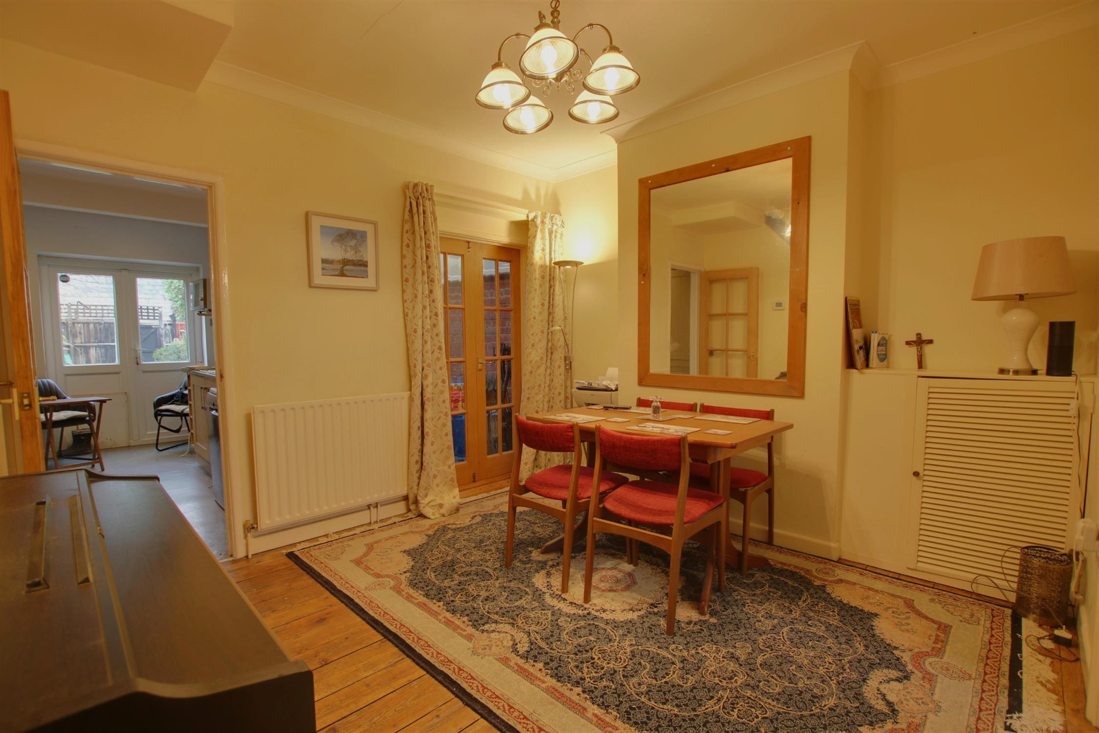 Under stairs storage cupboard. Door to kitchen. Glazed doors to sitting room. Radiator. Stripped wood flooring.