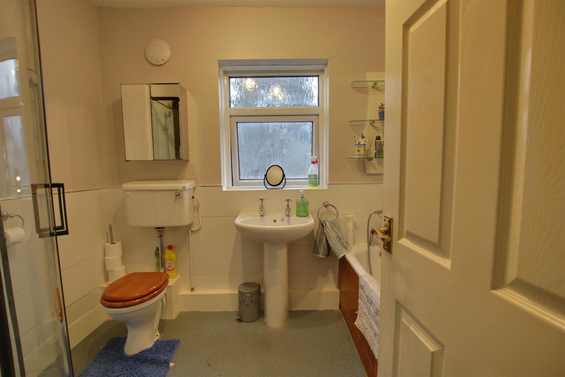 Double glazed obscure glass window to rear aspect. Smooth ceiling. Panel enclosed bath with mixer tap and shower attachment, pedestal wash basin, low level flush w.c. and shower cubicle with rainfall shower head and separate shower attachment. Radiator.