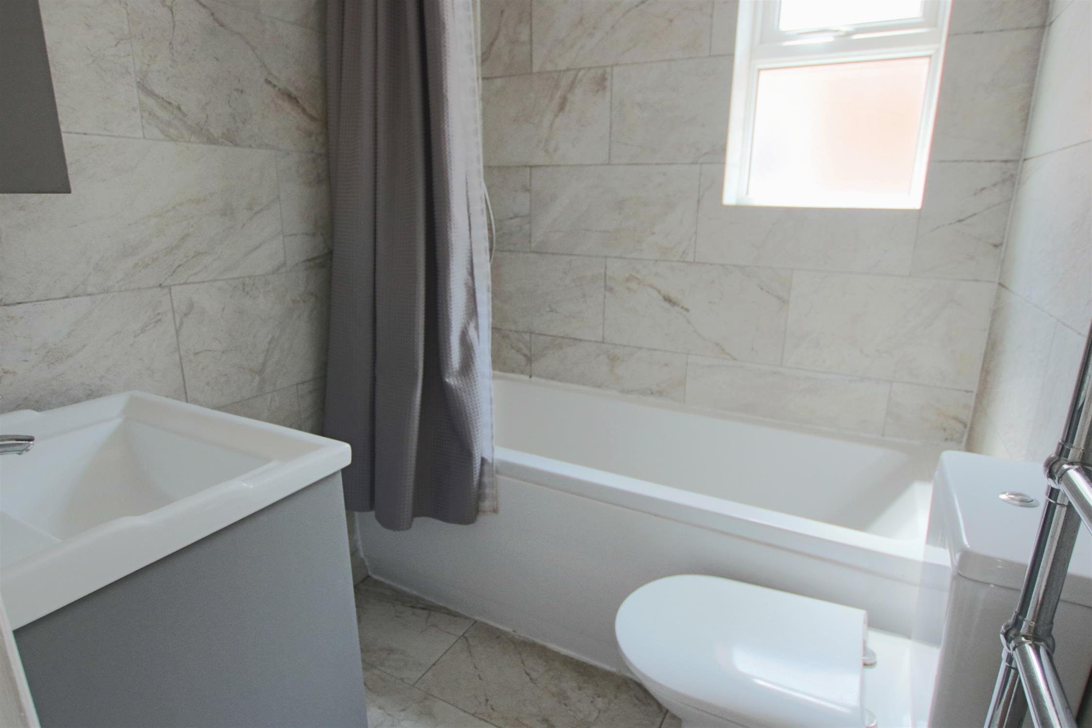 Modern refitted suite with Panelled bath and shower over. Vanity hand basin and w.c. Heated towel rail. Double glazed window and recessed lighting.