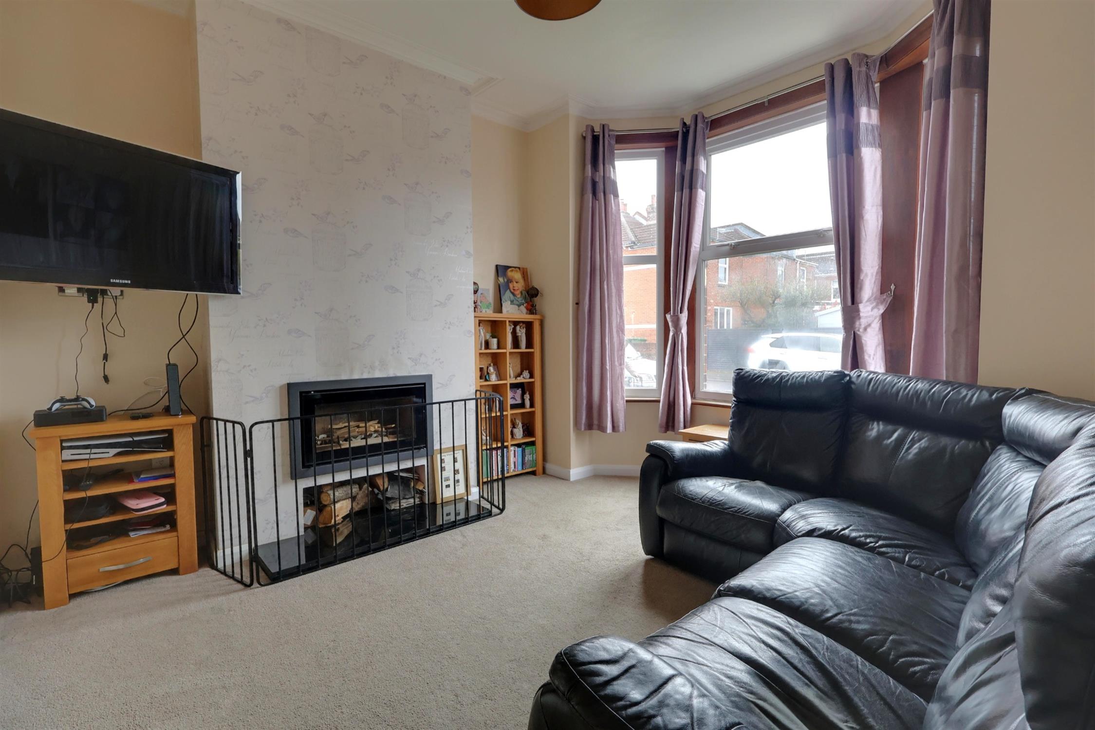 Double glazed bay window to front aspect. Period plaster coving to smooth ceiling. Radiator. Built-in wood burner.