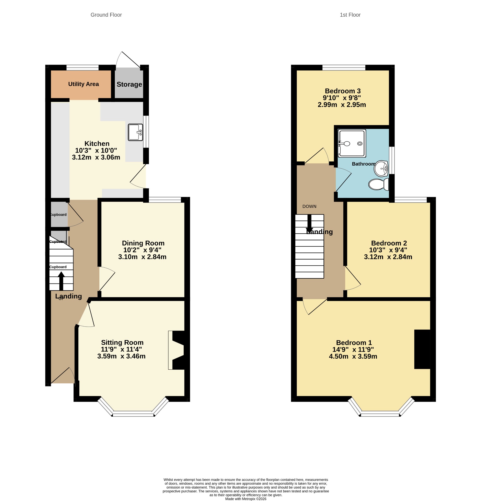 Smooth ceiling. Loft hatch with pull down ladder. Doors to all rooms.