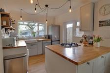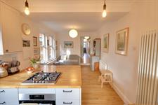 Double glazed windows to side and rear aspects. Double glazed door opening onto rear garden. Sink unit with mixer tap and cupboard under. A range of matching kitchen units with wood block work surface over. Built-in oven with fitted four ring gas hob. Space and plumbing for washing machine and dishwasher. Space for fridge/freezer. Three radiators. Laminate flooring.