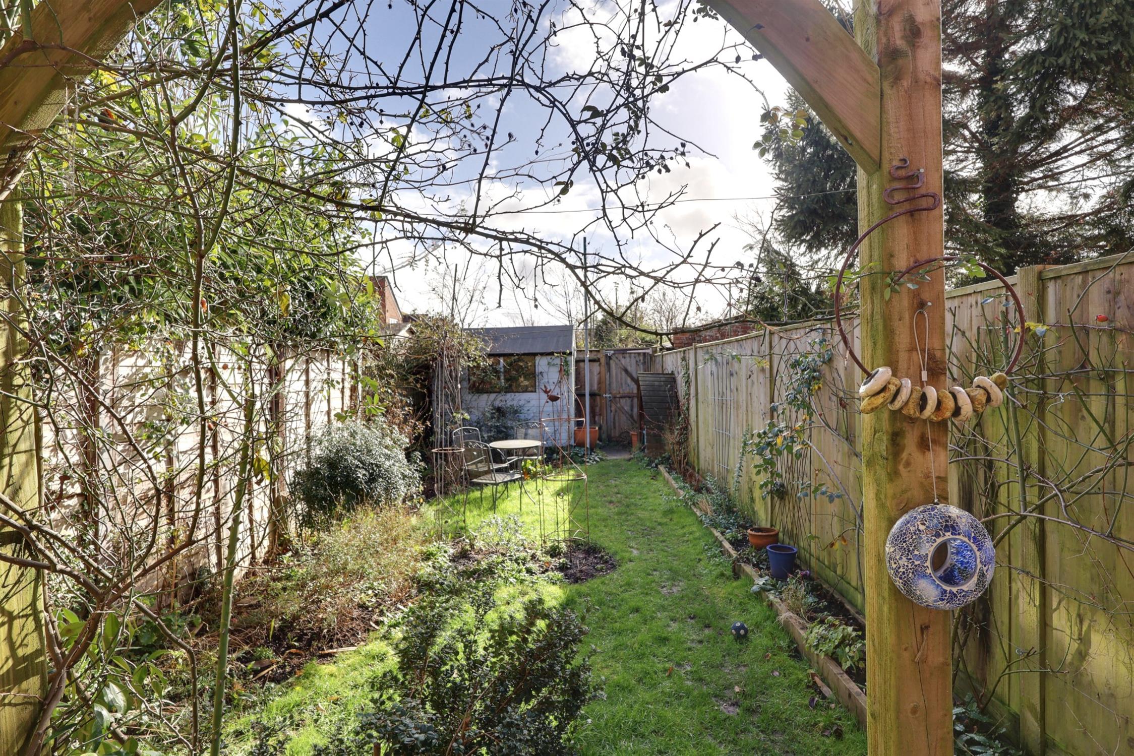 The rear garden is fully enclosed and has the benefit of a south easterly aspect. Paved patio seating area with pergola over. Garden shed. Outside tap. External power point. The garden is principally laid to lawn with established borders populated with a variety of mature plants and shrubs. Gated pedestrian access to the rear.