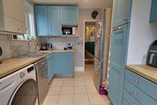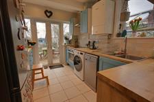 Double glazed windows to side and rear aspects. Smooth ceiling with inset spotlights. Single drainer one and a half bowl sink unit with mixer tap and cupboard under. Range of matching eye level and base mounted units with roll top work surface over. Built-in oven with fitted four ring electric hob and extractor over. Space and plumbing for washing machine. Space for dishwasher and space for fridge/freezer. Part tiled walls. Wall mounted combination boiler. Tiled flooring. Double glazed French doors to rear garden.