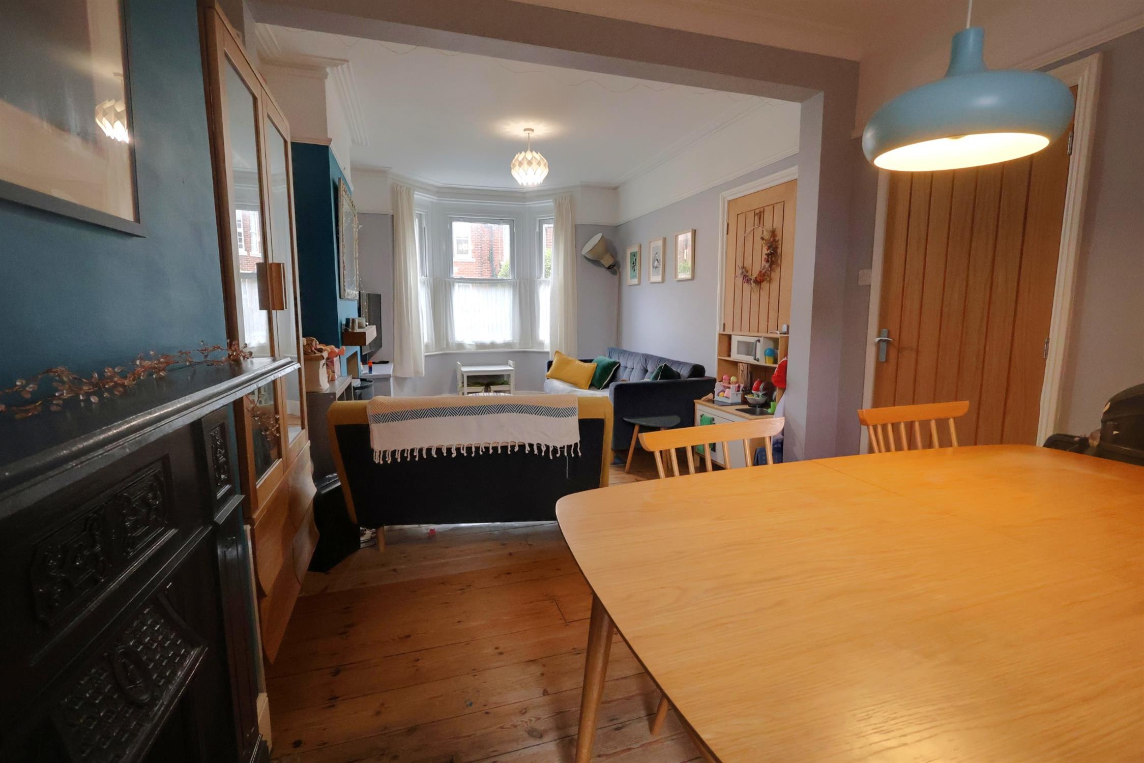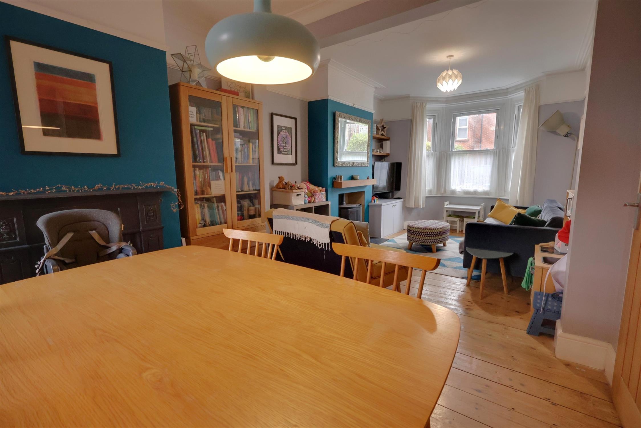 Double glazed bay window to front aspect. Period plaster coving to smooth ceiling. Picture rail. Wood burner. Radiator. Stripped wood flooring.