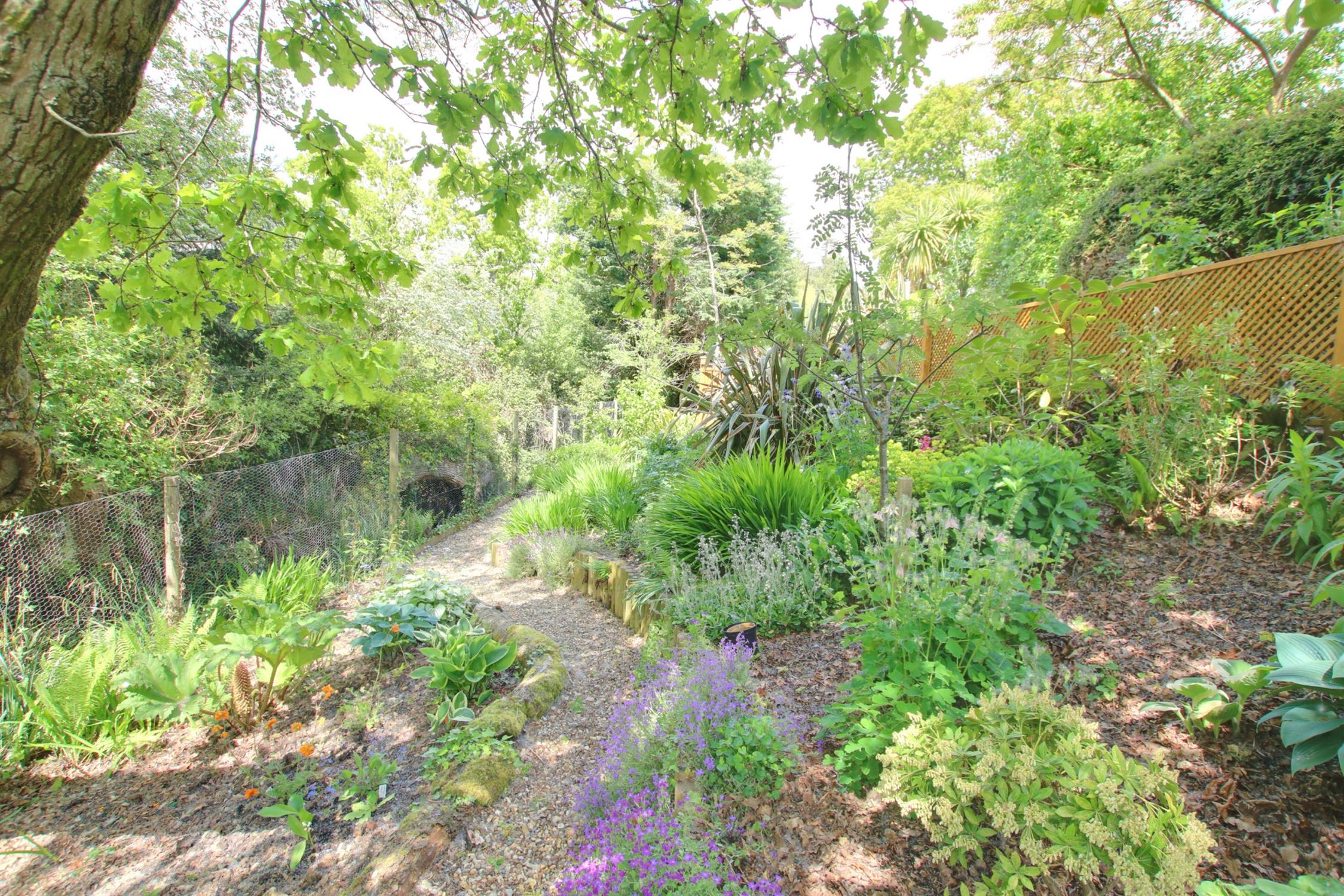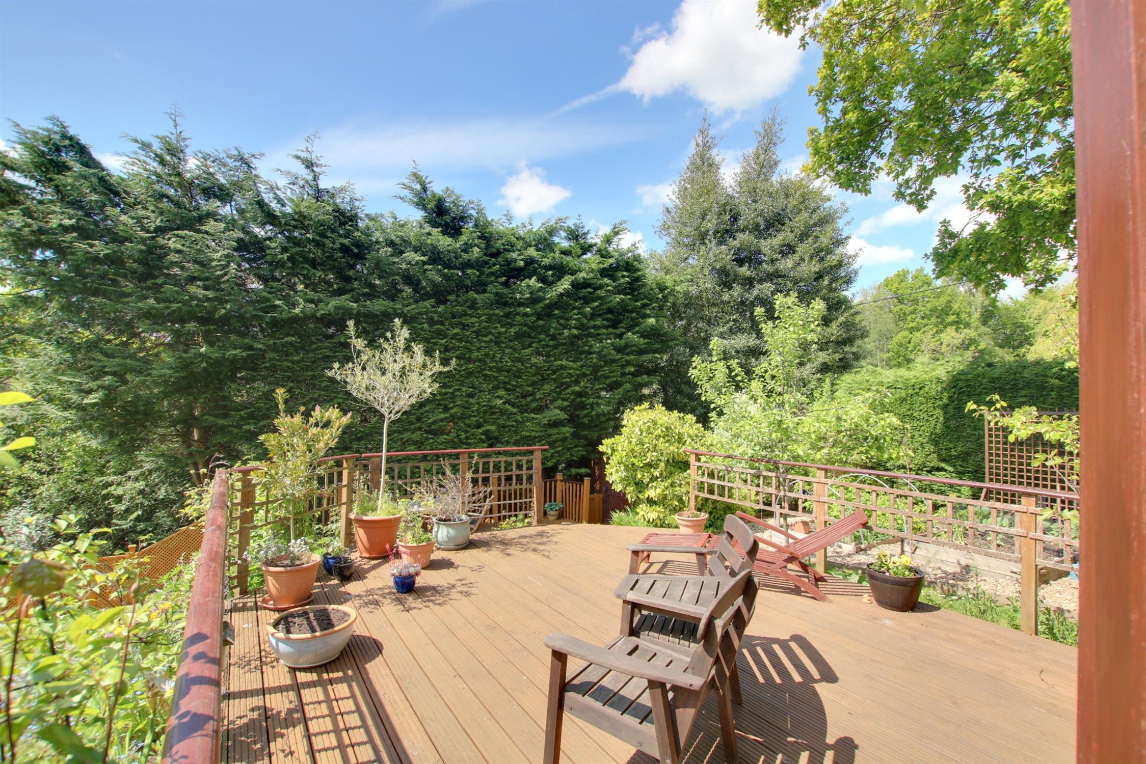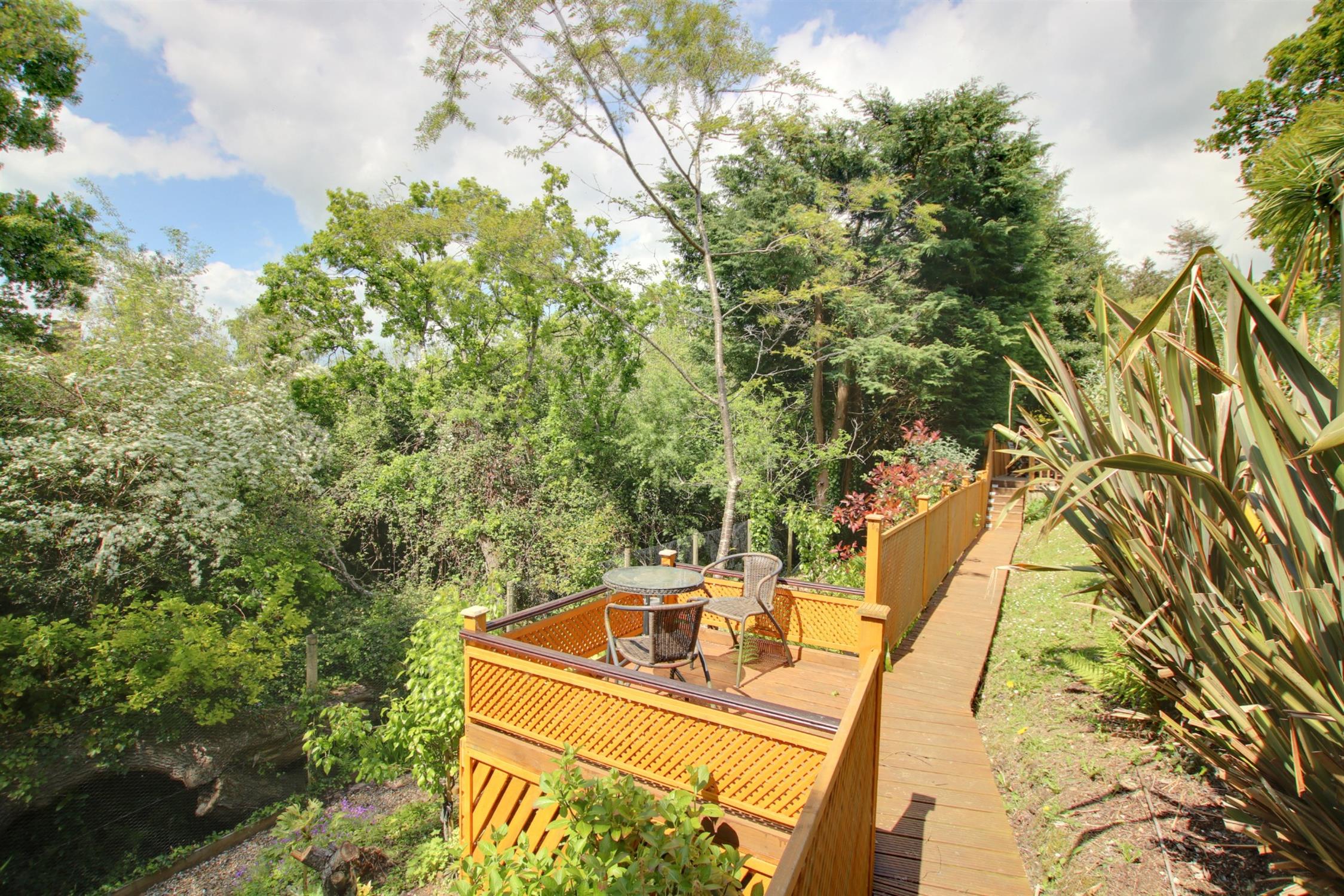 The FRONT of the property is mainly lawned with well stocked flower beds. There are two driveways, one to the right of the property with gates leading to the parking/storage area and an additional tarmac access drive leading to the DOUBLE GARAGE with up and over doors, power, light and personal door. The REAR GARDEN is beautifully arranged with a wide selection of flowers, mature shrubs and established trees. There is a paved terrace at the back of the property along with a raised decked area adjoining the rear of the conservatory. A gravelled area at the side provides an area for raised vegetable patches. The boardwalk meanders down to the lower level decked area and also to the lower ‘woodland themed’ planted area with a gravel path, where there is also a selection of established planting. Potting shed, tool shed and greenhouse.