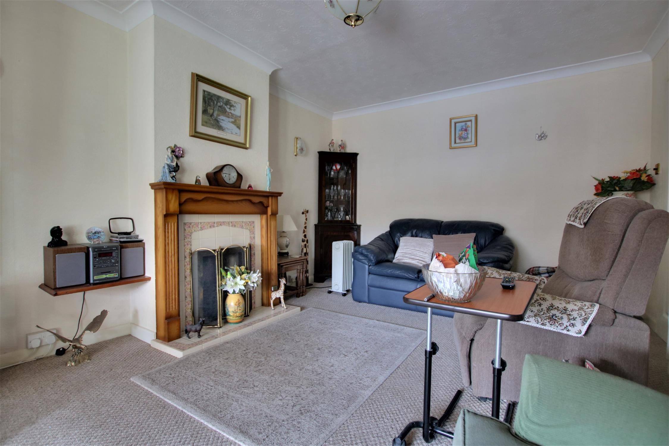Carpet flooring. Feature fireplace. Textured ceiling. Double glazed sliding door to:-